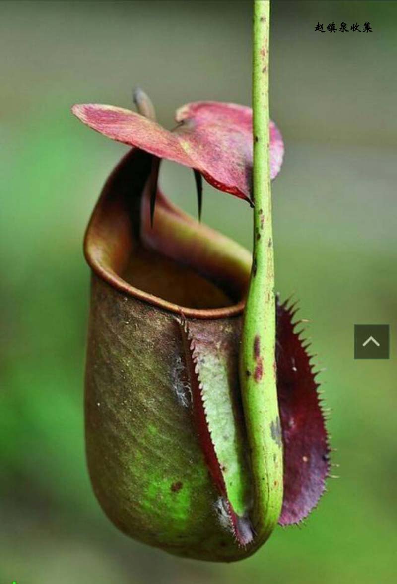独特植株猪笼草,产于我国粤南地。拥持器皿捕虫笼,引诱昆虫作食肆。