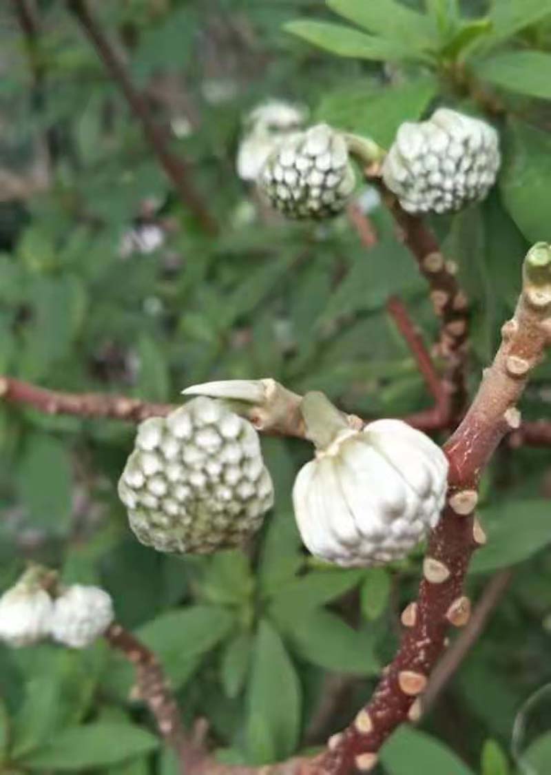 树冠球状结香木,枝叶美丽产豫陕。枝蔓打团可造型,惹人喜爱齐观赏。