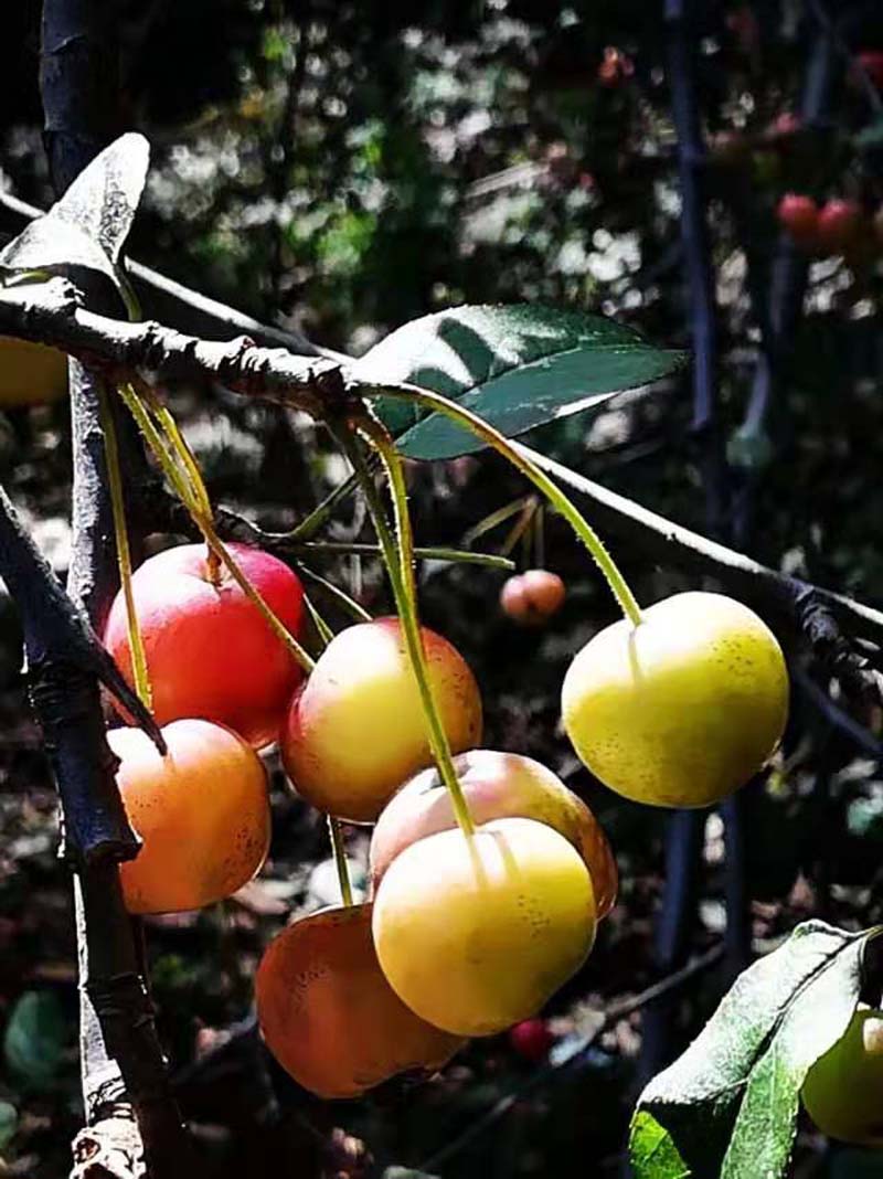 海棠起处在中国,资质丰盈品种多。春赏花姿秋观果,花中神圣定身她。
