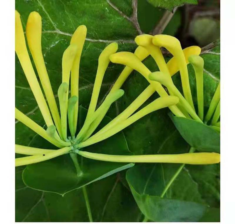 落叶藤枝叶藏花,叶形奇异产中华。叶中长出花容美,绿化经销价值嘉。
