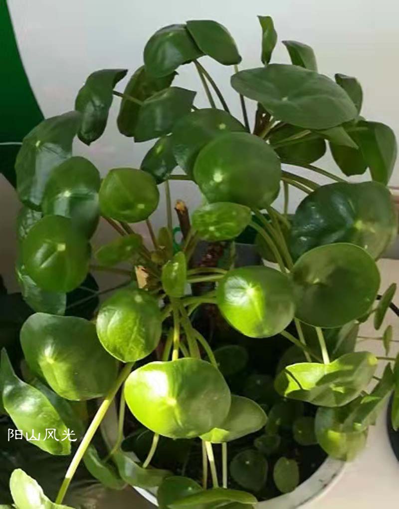 肉身植物翠屏草,托叶鳞片茎上生。叶片园形如镜子,室居盆种好佳名。