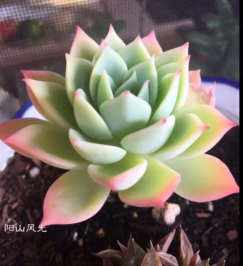杂交植物蒂比名,莲座植株茎短生。叶片卵形尖泛艳,盆栽室内好详评。