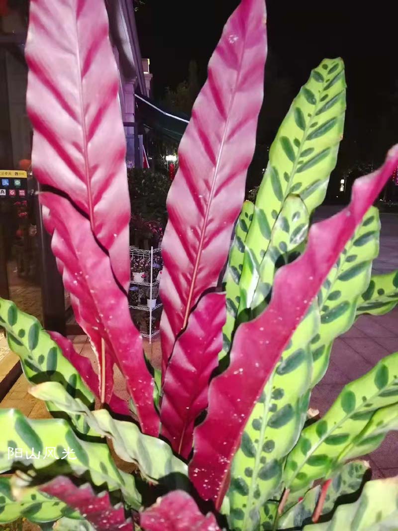 箭弦竹芋早年辰,叶片向阳斜展伸。表面布生斑色块,形如箭羽产巴西。