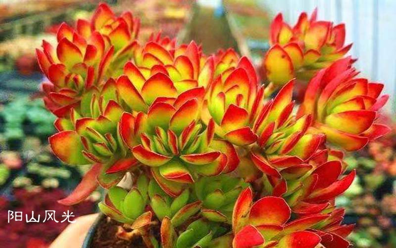 肉质植株天狗舞,植茎丛茂墨西哥。红边叶子鲜妍美,室内盆栽好观摩。