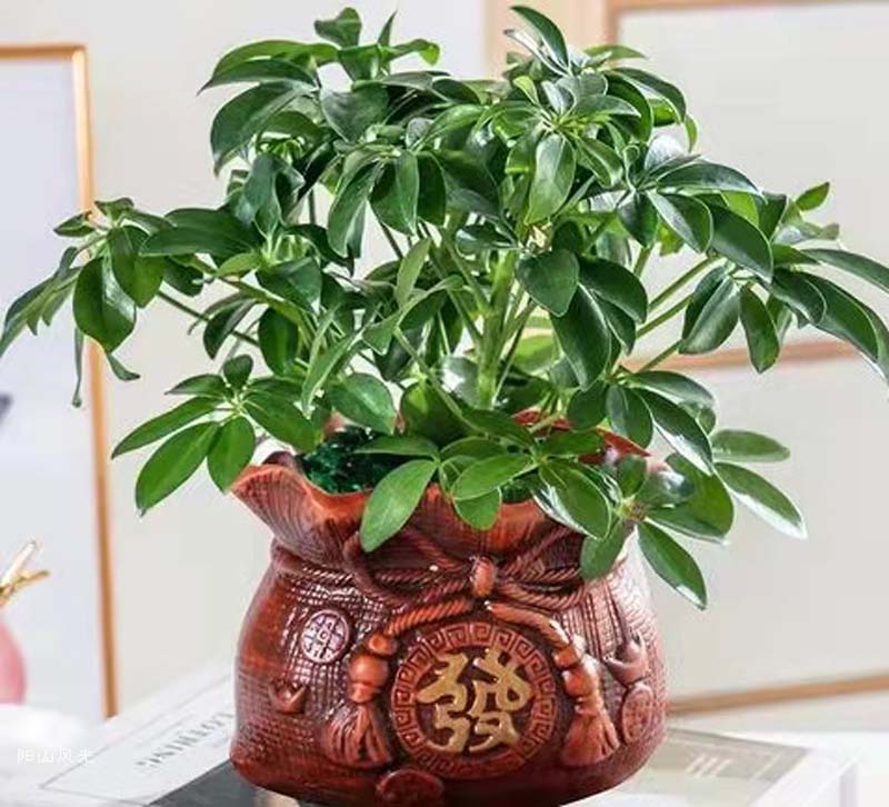八面来财名字妙,枝繁叶茂油光青。叶枝八片生来怪,广进财源尽好听。