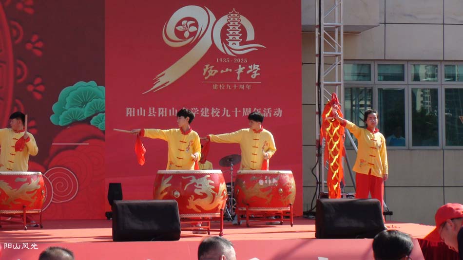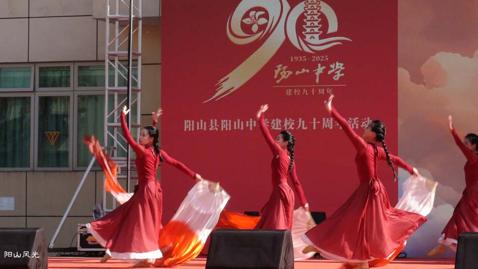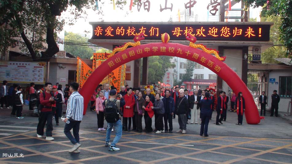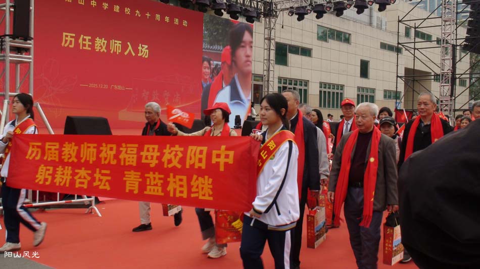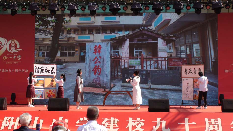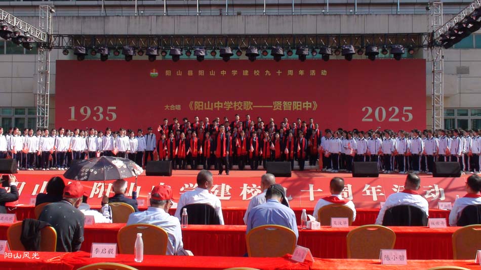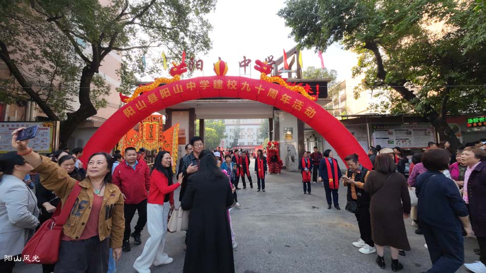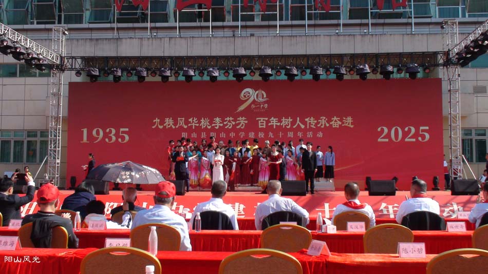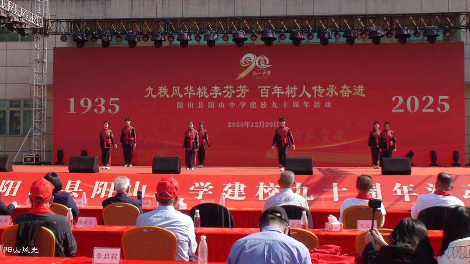 2025年12月20日,阳山中学举办建校90周年校庆活动。老校友们欢聚一堂庆祝母校90岁生日,学生们演出了丰富的文艺节目。晚上还有音乐会。