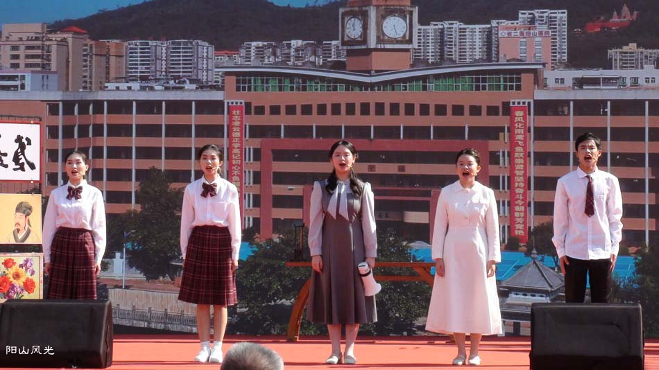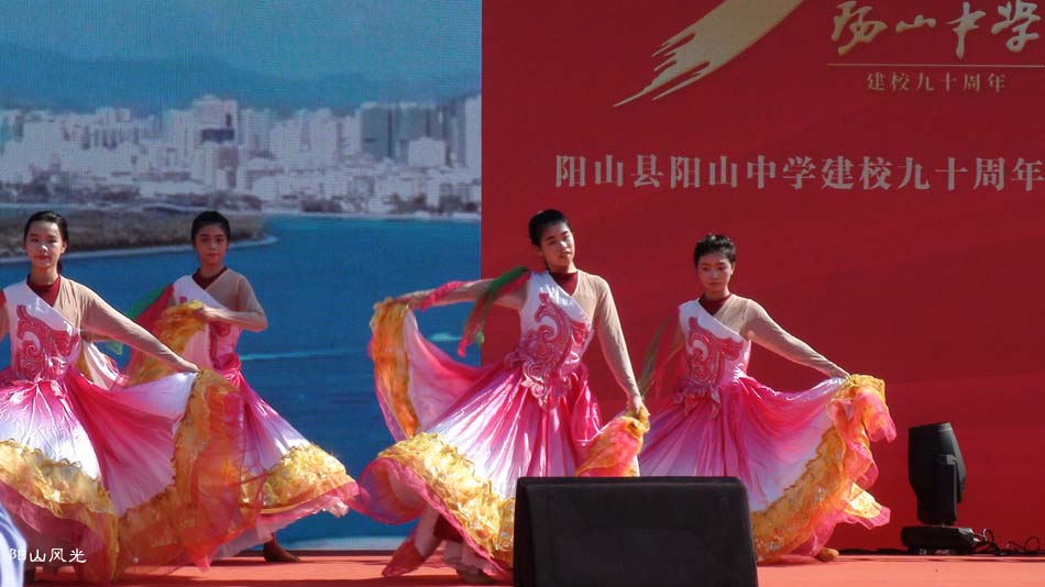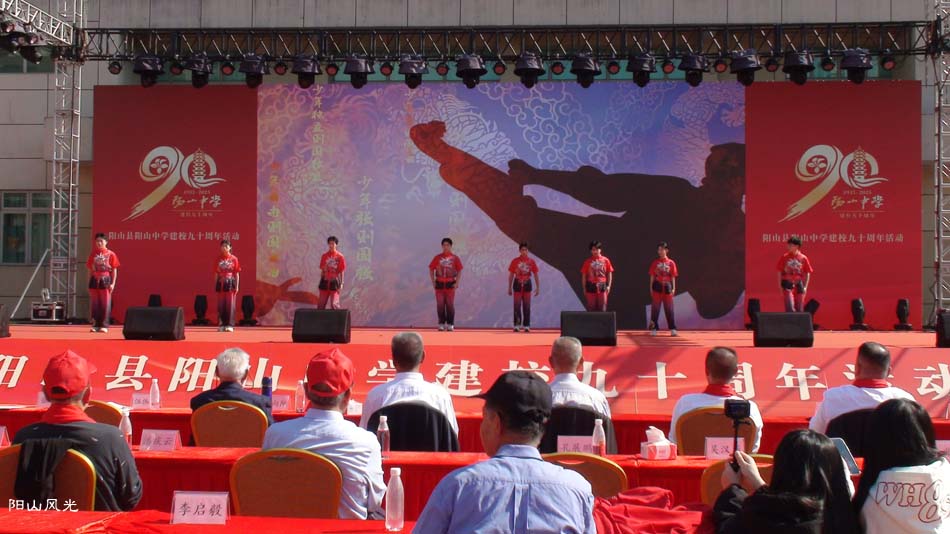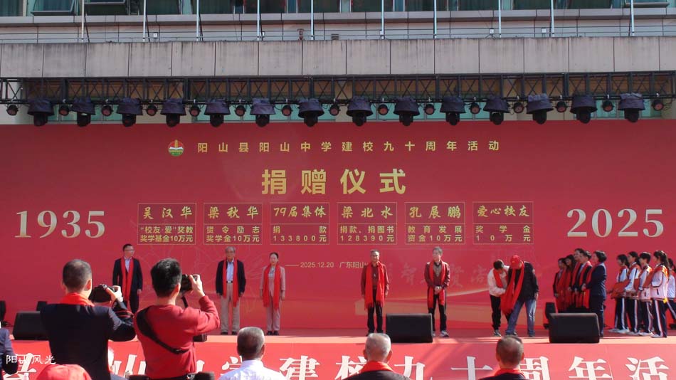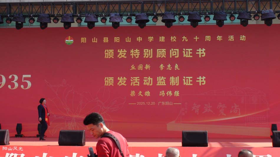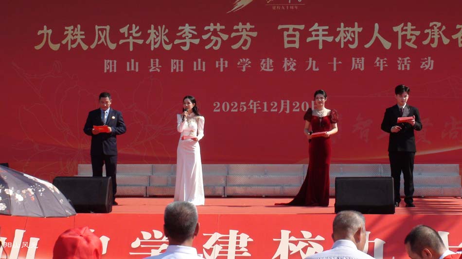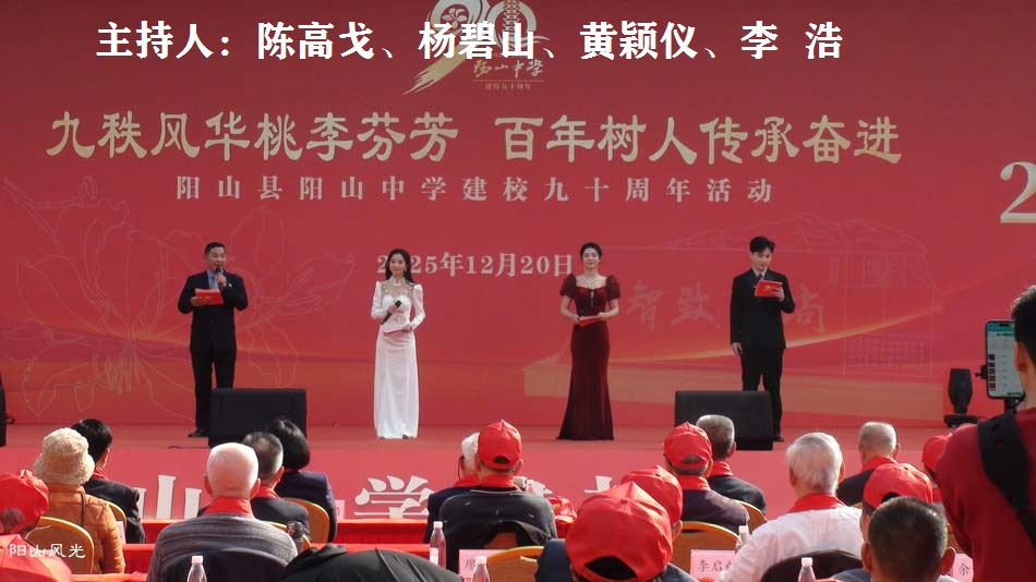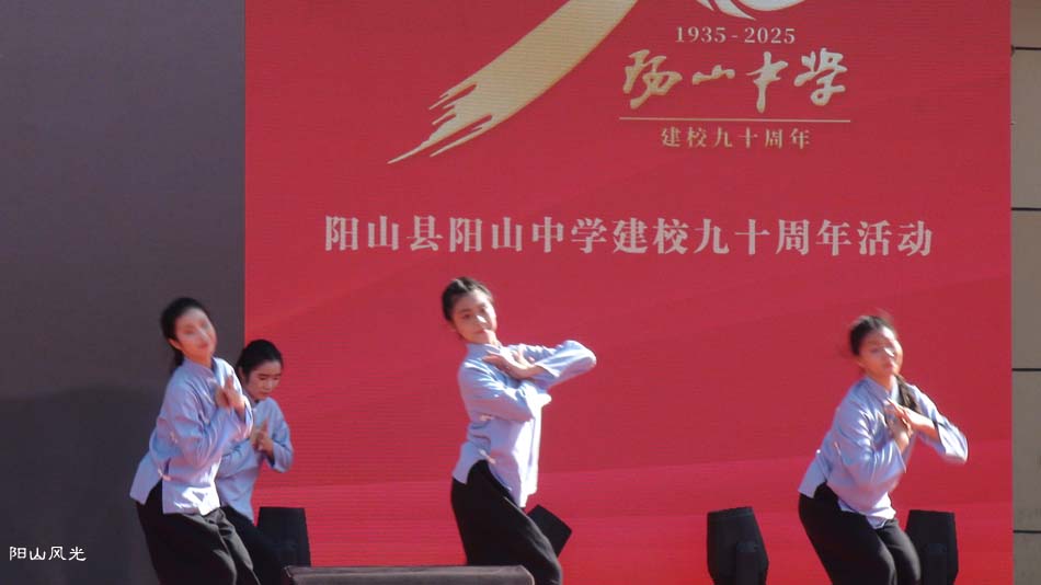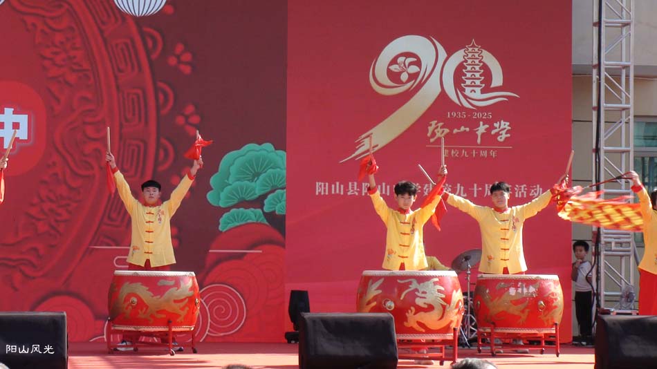 2025年12月20日,阳山中学举办建校90周年校庆活动。老校友们欢聚一堂庆祝母校90岁生日,学生们演出了丰富的文艺节目。晚上还有音乐会。