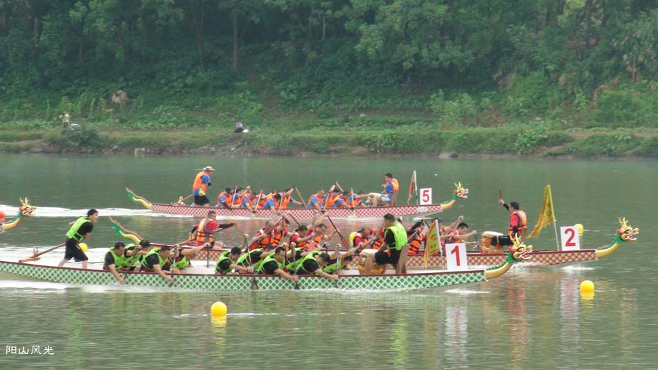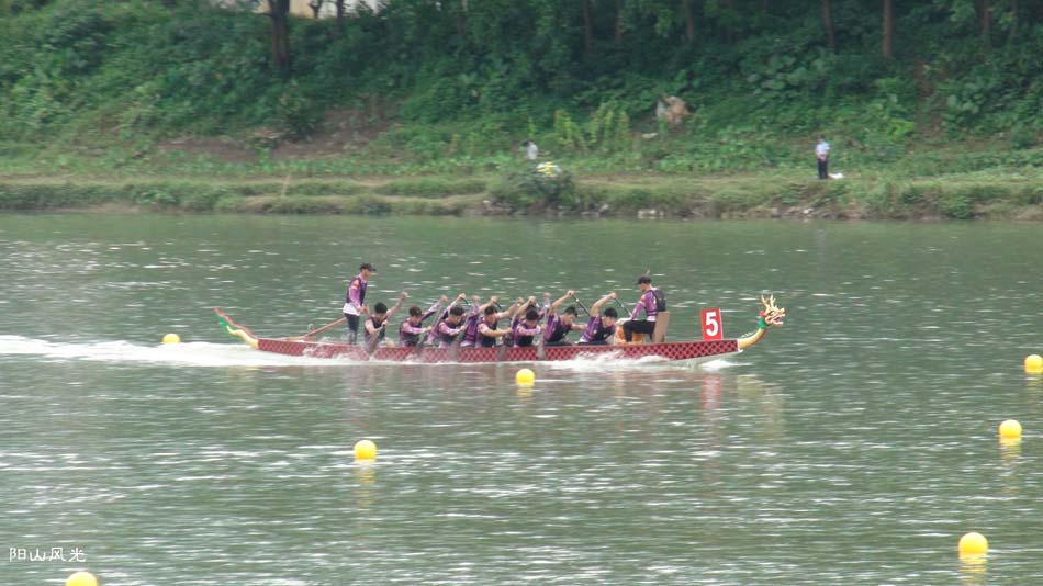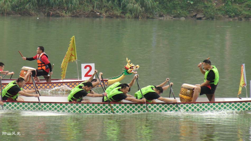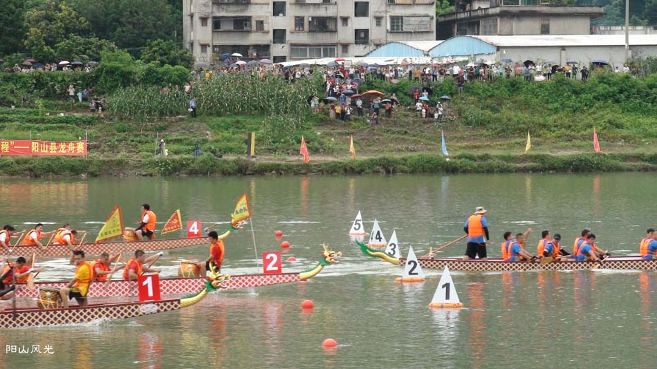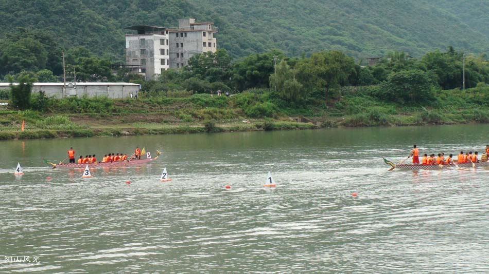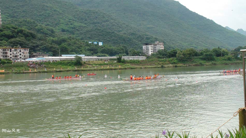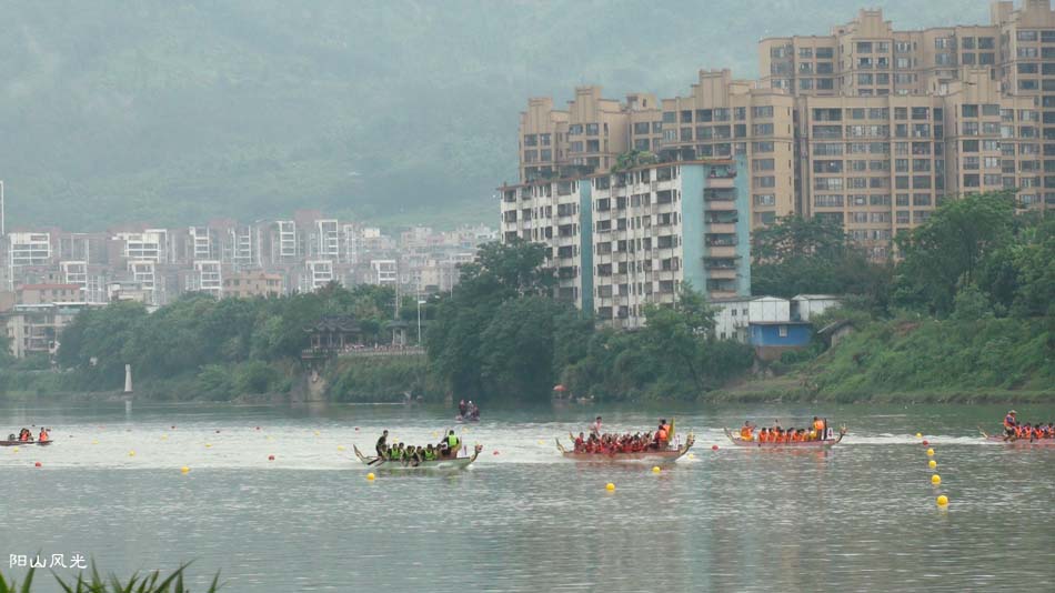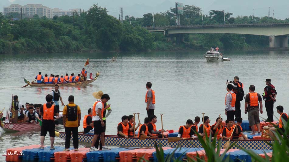 2024年6月30日,阴天。阳山县人民政府主办了2024年龙舟比赛。地址就在县城阳山大桥至韩愈大桥河段。有十五支龙舟队参加比赛。有特邀嘉宾顺德从乐罗浮宫龙舟队助兴,连江两岸一万多观众观看了比赛。节日气氛浓郁有加。