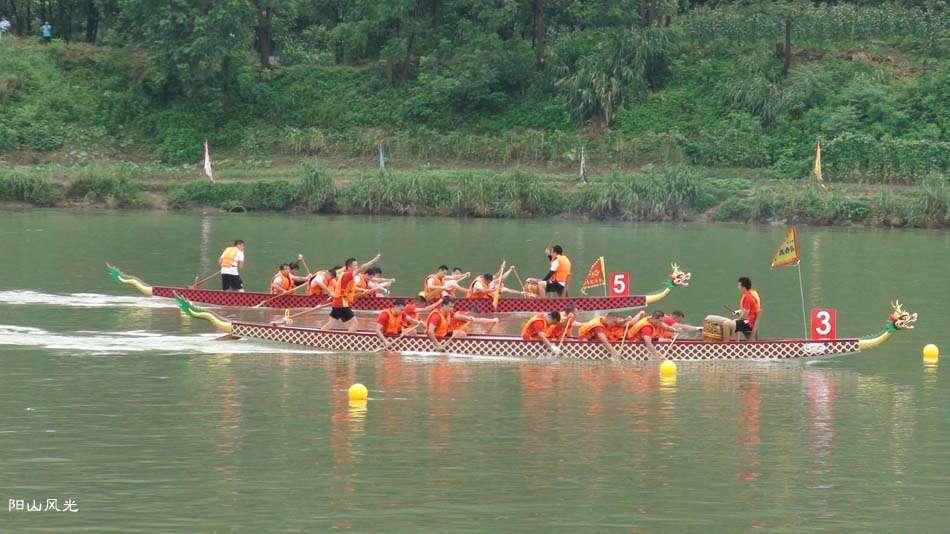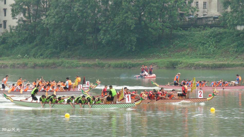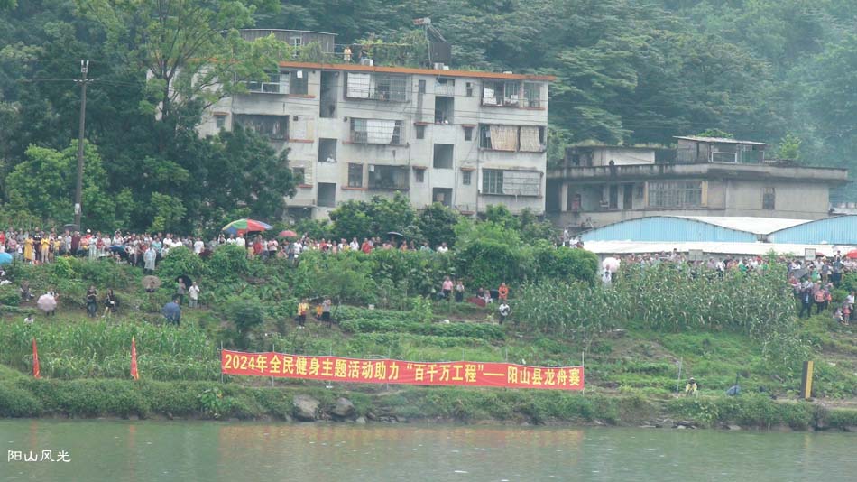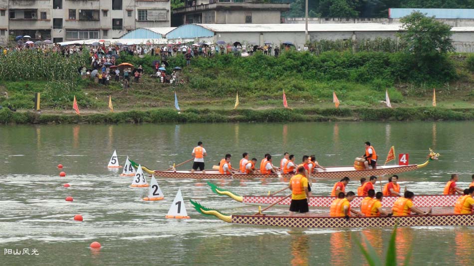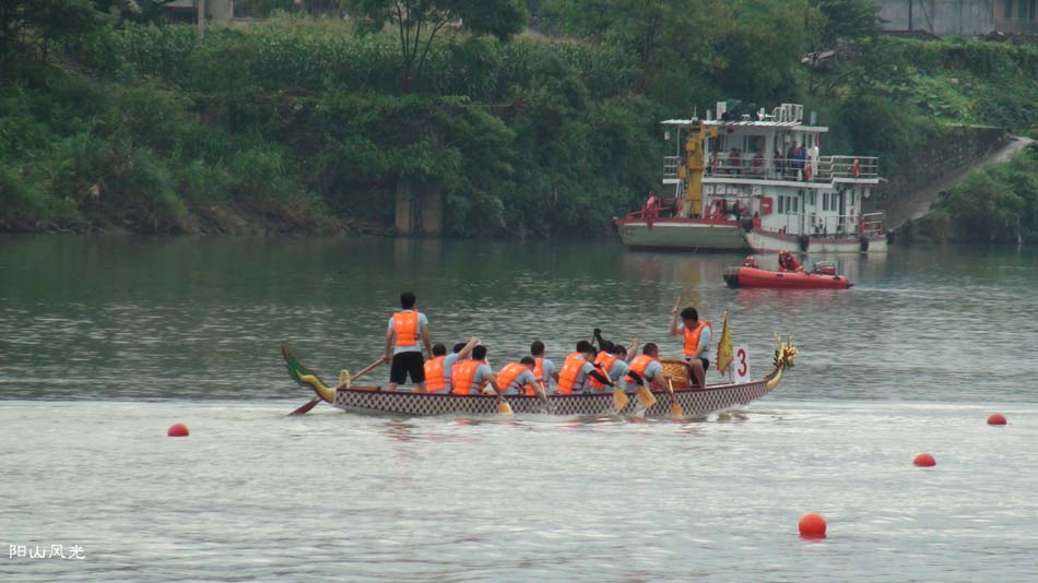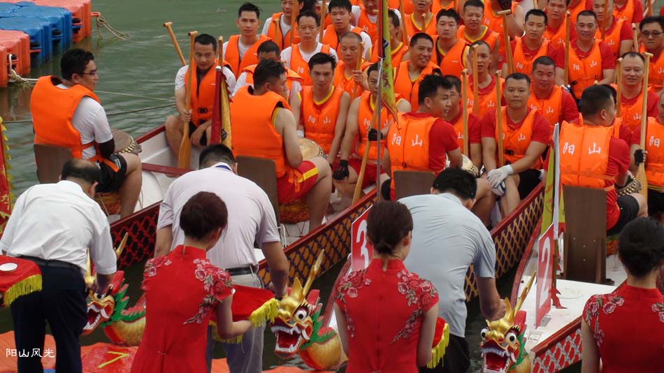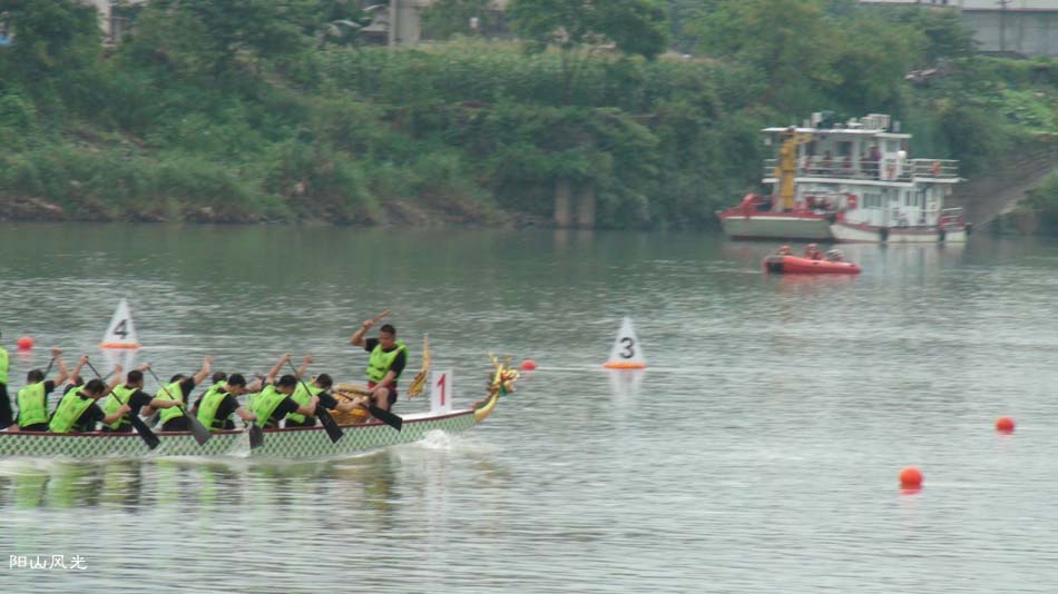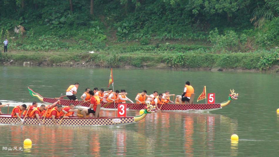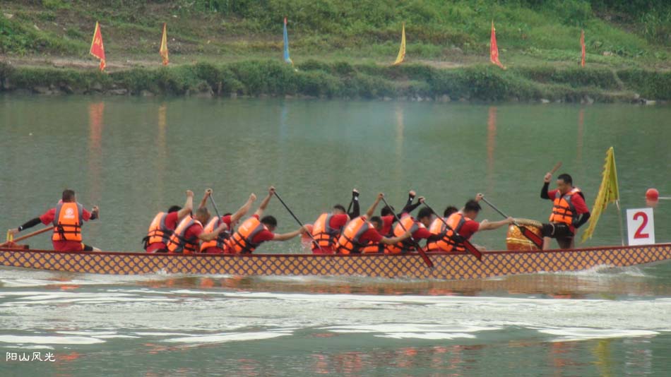 2024年6月30日,阴天。阳山县人民政府主办了2024年龙舟比赛。地址就在县城阳山大桥至韩愈大桥河段。有十五支龙舟队参加比赛。有特邀嘉宾顺德从乐罗浮宫龙舟队助兴,连江两岸一万多观众观看了比赛。节日气氛浓郁有加。