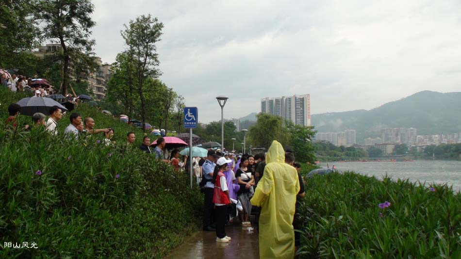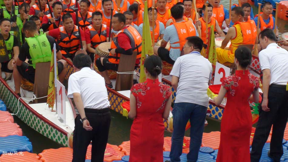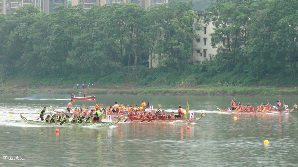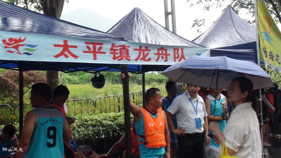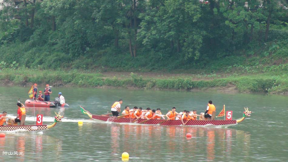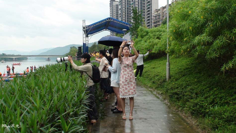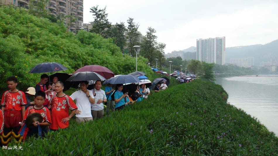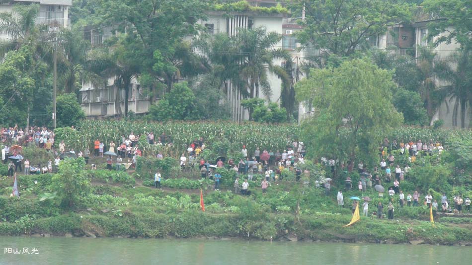 2024年6月30日,阴天。阳山县人民政府主办了2024年龙舟比赛。地址就在县城阳山大桥至韩愈大桥河段。有十五支龙舟队参加比赛。有特邀嘉宾顺德从乐罗浮宫龙舟队助兴,连江两岸一万多观众观看了比赛。节日气氛浓郁有加。