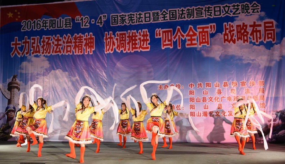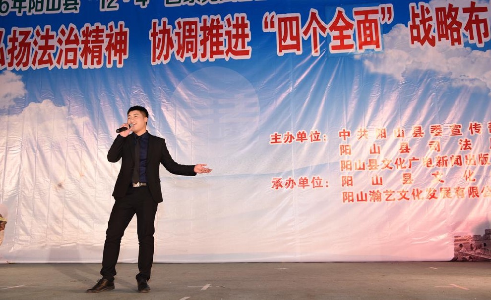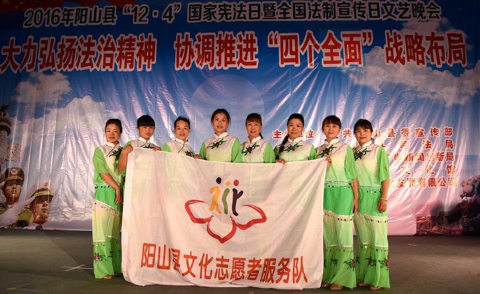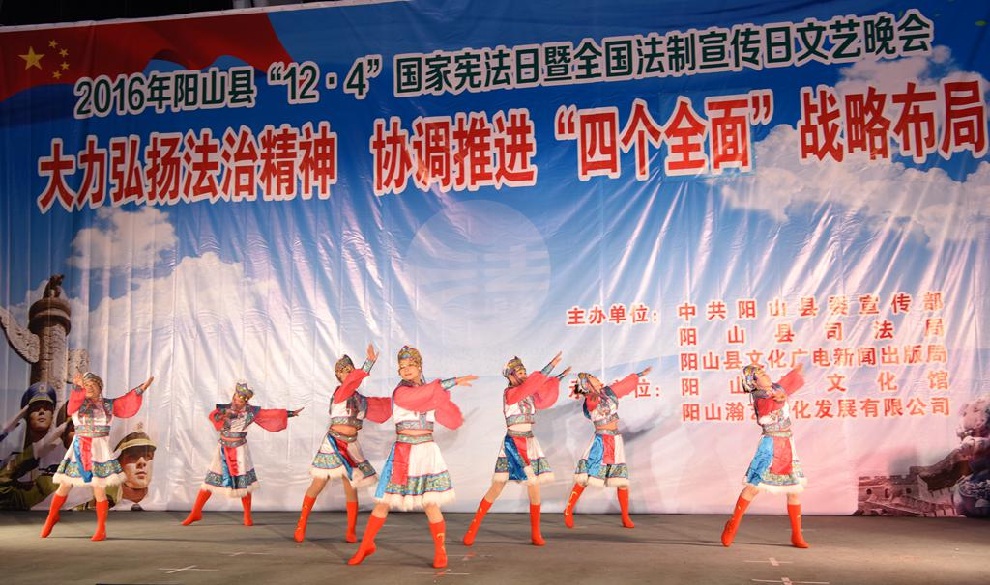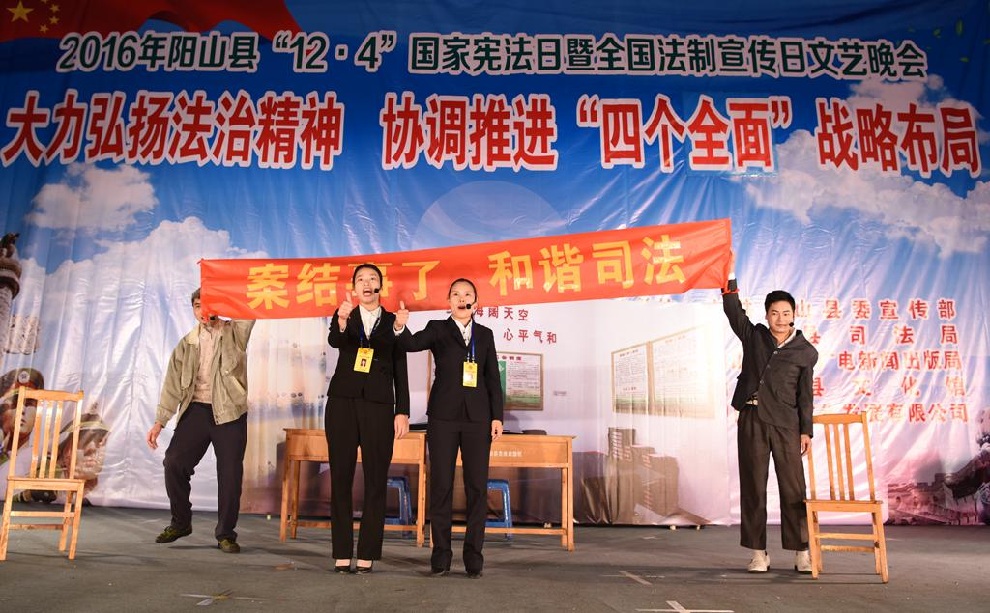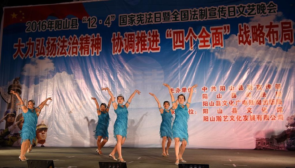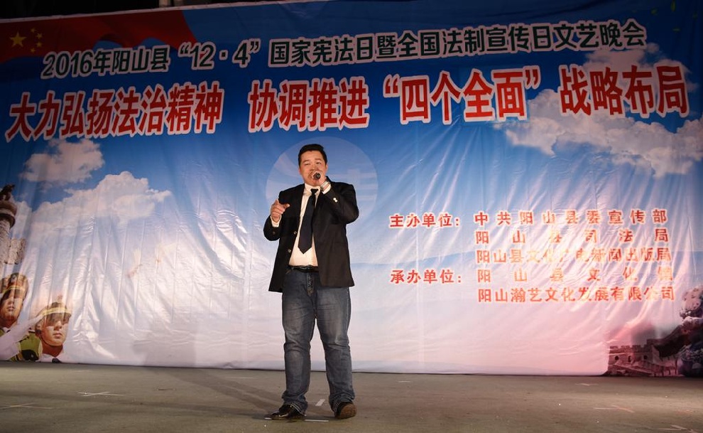 12月1日晚7:30,由中共阳山县委宣传部、阳山县司法局、阳山县文化广电新闻出版局主办,阳山县文化馆和阳山县瀚艺文化发展有限公司承办的“2016年阳山县12.4国家宪法日暨全国法制宣传日”文艺晚会在阳山影剧院门前广场隆重举行。前往观看晚会的领导有中共阳山县委常委、政法委书记朱燕群,中共阳山县委常委、宣传部部长李素娟,阳山县人民政府副县长、公安局局长黄构恩,阳山县人大副主任李神娣,阳山县政协副主席熊雄,阳山县委宣传部副部长唐志荣,阳山县司法局局长甘志科,阳山县司法局副局长欧阳广华,阳山县普法办主任李永和,阳山县文化广电新闻出版局副局长高桂梅。