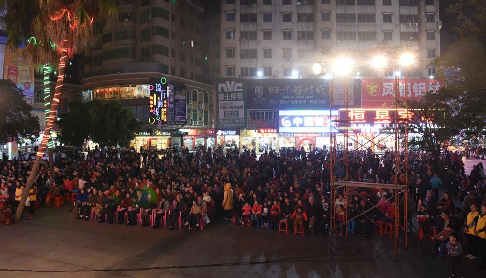 影剧院门前广场挤满了观看演出的群众。
