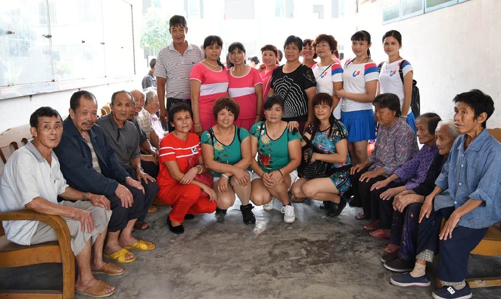 参加慰问演出的文化志愿者与新墟敬老院工作人员合影。