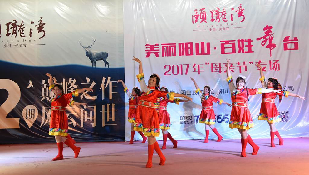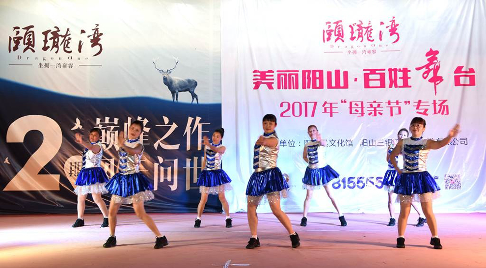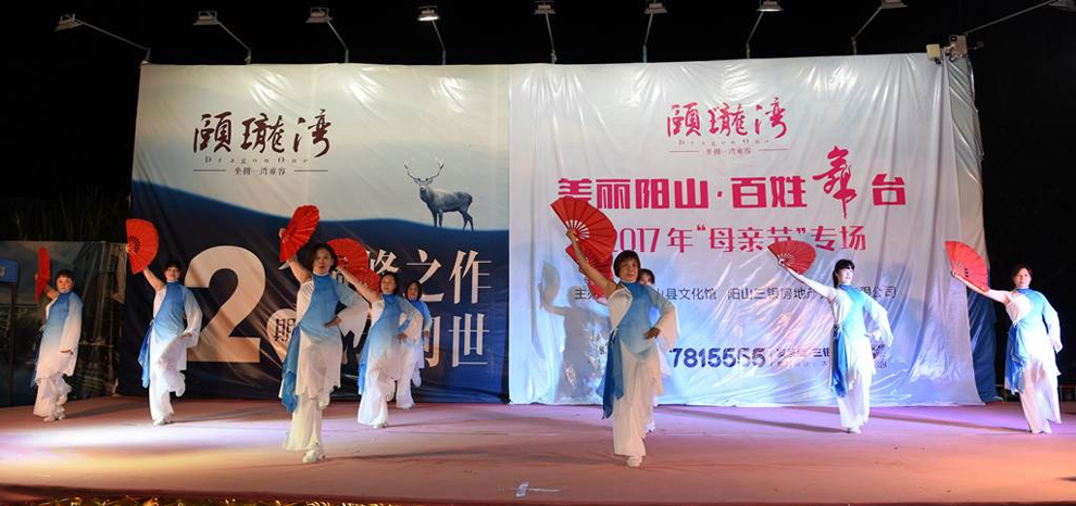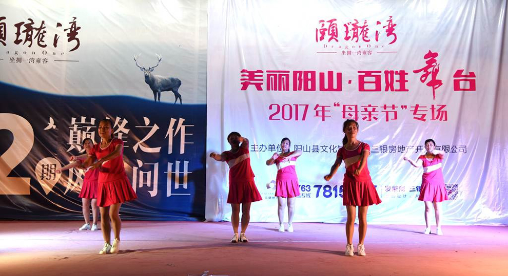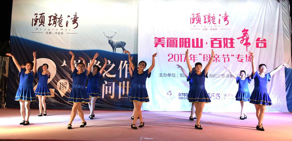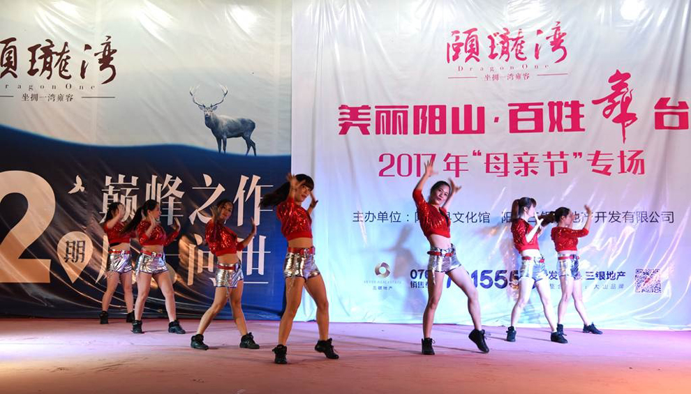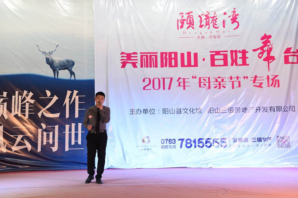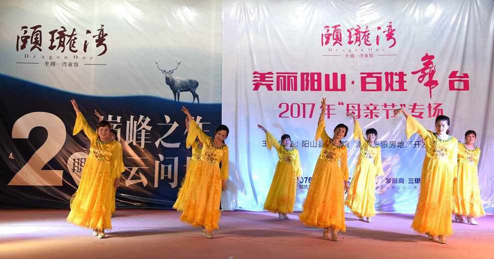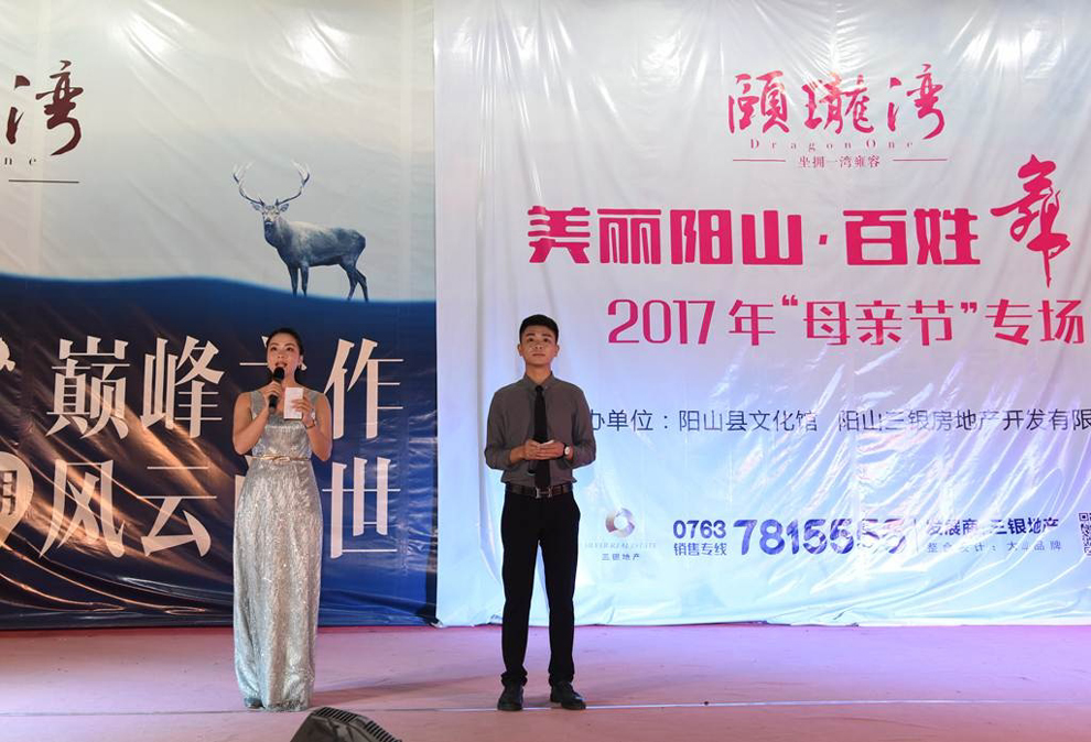 2017年5月12日晚8时,由阳山县文化馆、阳山三银房地产开发有限公司共同主办的“美丽阳山.百姓舞台”2017年母亲节专场在美丽的颐珑湾中心广场隆重开演。