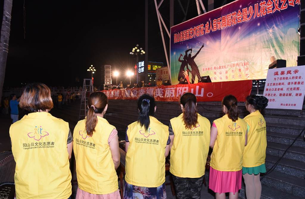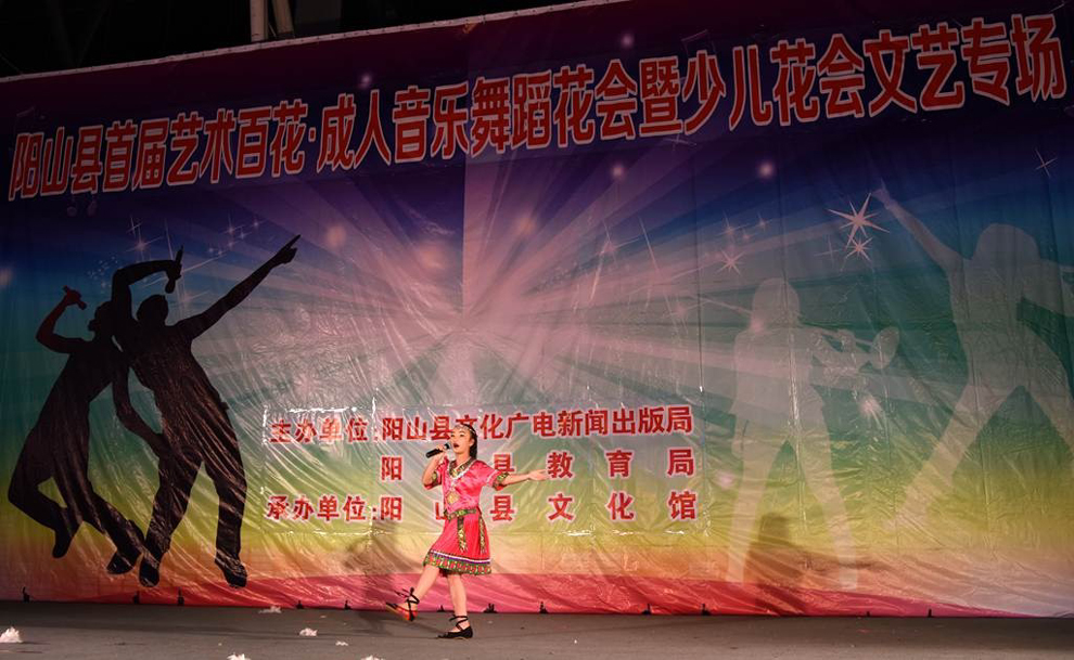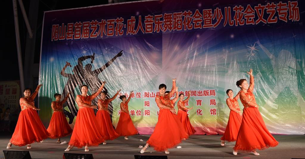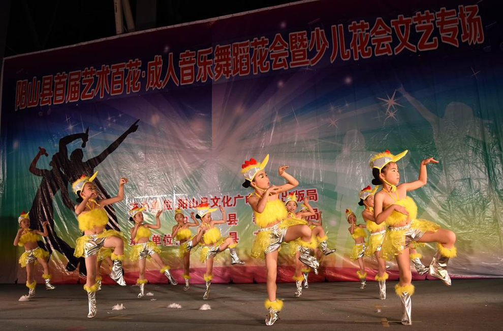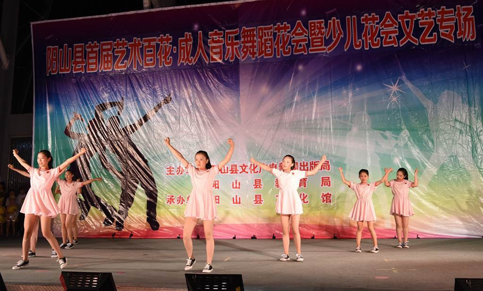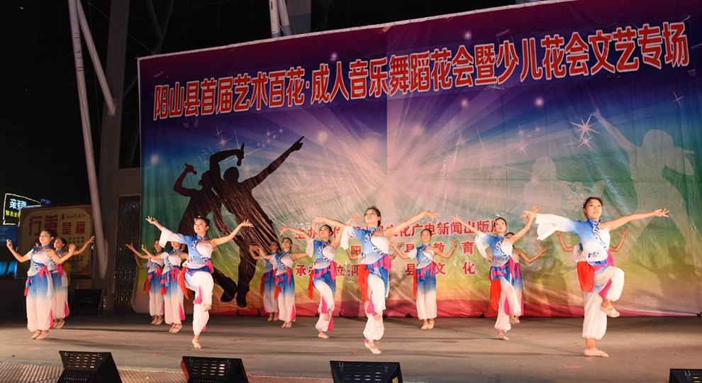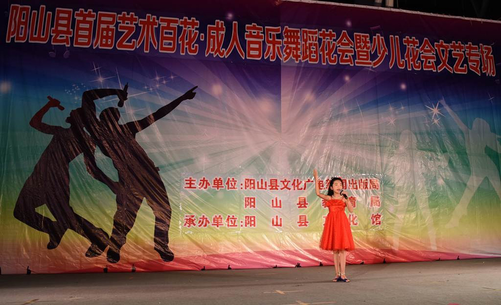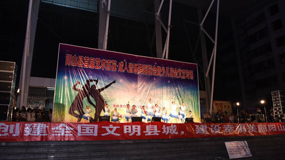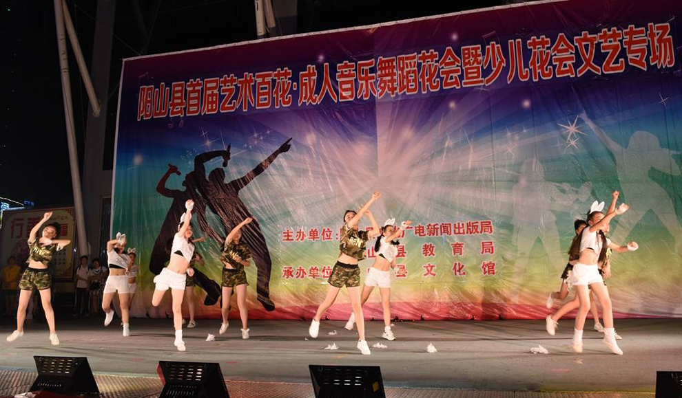 2017年5月18日晚8时,由阳山县文化广电新闻出版局、阳山县教育局主办,阳山县文化馆承办的阳山县首届艺术百花.成人音乐舞蹈花会暨少儿花会在阳山影剧院门前广场隆重上演。