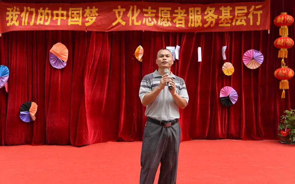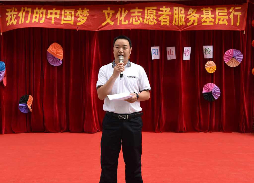 县特殊教育学校副校长欧阳朝东在演出前讲话。