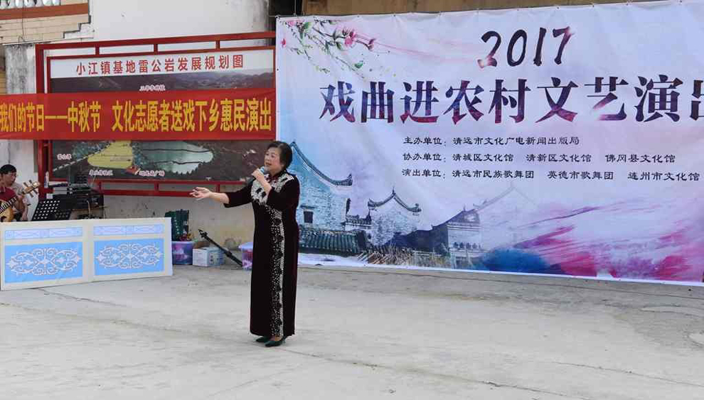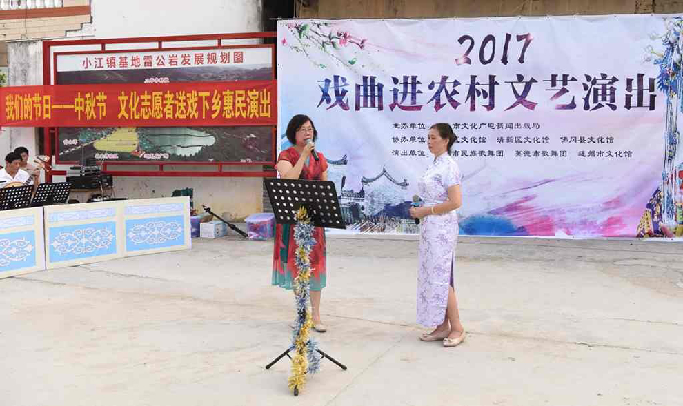 为贯彻落实习近平总书记关于文艺工作的重要讲话和市文广新局《关于开展2017年清远市戏曲进农村试点工作的通知》精神,普及和传承中华优秀传统文化,繁荣农村戏曲市场,迎接和庆祝党的十九次全国代表大会的召开,紧紧围绕县委、县政府实施“三个全域,两大攻坚”的战略部署,根据县文广新局的部署安排,县文化馆组织阳禺粤乐社深入本县农村基层,于2017年9月18日下午来到小江镇双山村村民委员会开展“2017戏曲进农村文艺演出”,受到当地群众的热烈欢迎。演出地点在双山村委会雷公岩村。