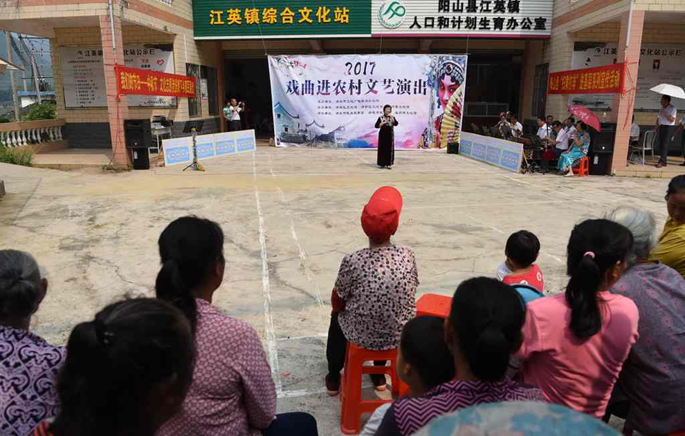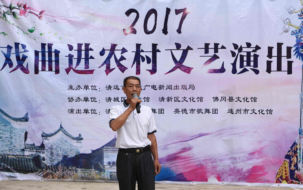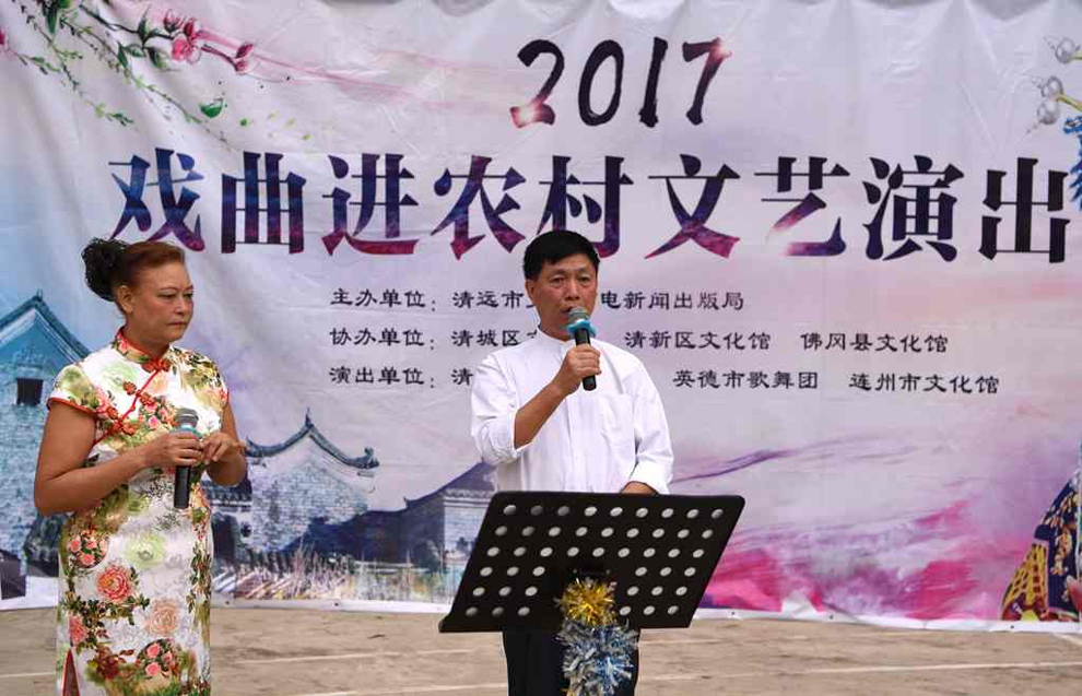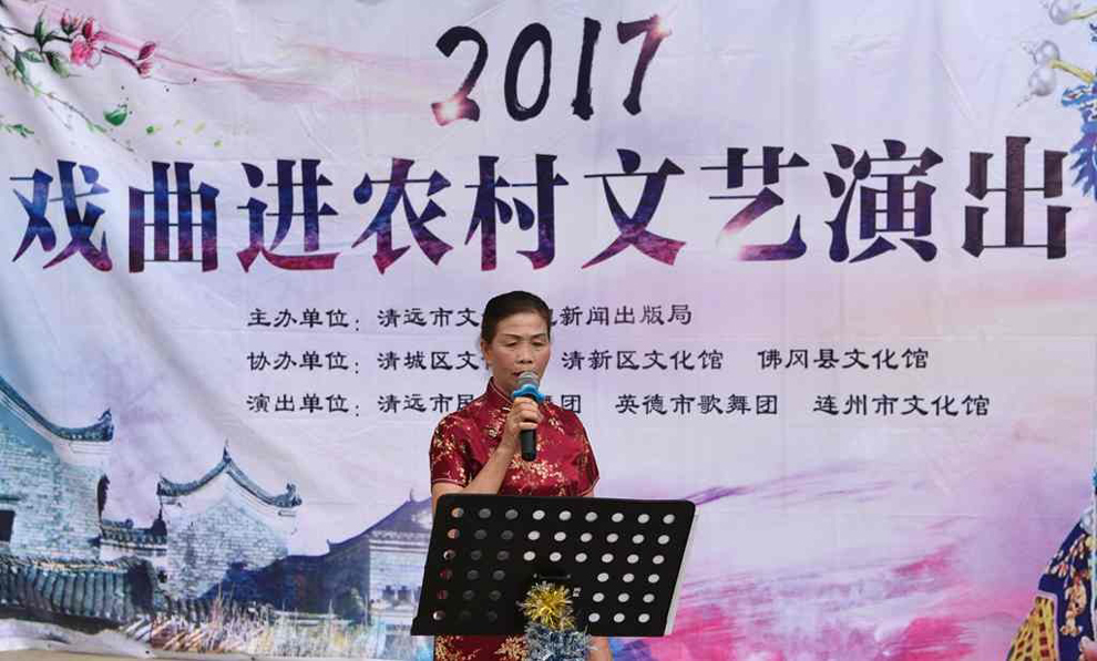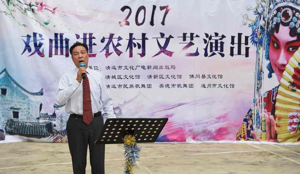 为贯彻落实习近平总书记关于文艺工作的重要讲话和市文广新局《关于开展2017年清远市戏曲进农村试点工作的通知》精神,普及和传承中华优秀传统文化,繁荣农村戏曲市场,迎接和庆祝党的十九次全国代表大会的召开,紧紧围绕县委、县政府实施“三个全域,两大攻坚”的战略部署,根据县文广新局的部署安排,县文化馆组织阳禺粤乐社深入本县农村基层,于2017年9月19日上午到江英镇江英村江南村小组开展“2017戏曲进农村文艺演出”,受到当地群众的热烈欢迎。惠民演出在江英镇文化站门前进行。