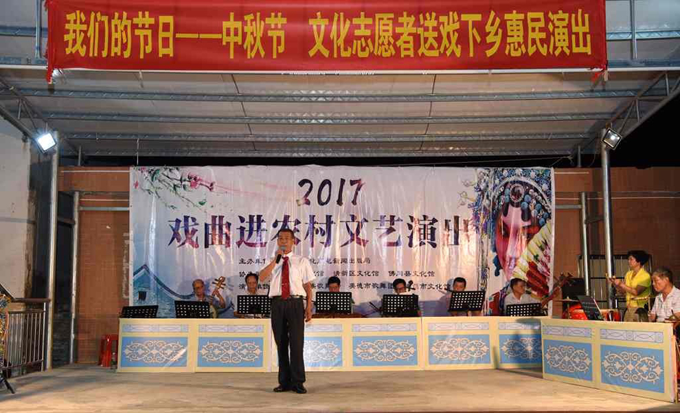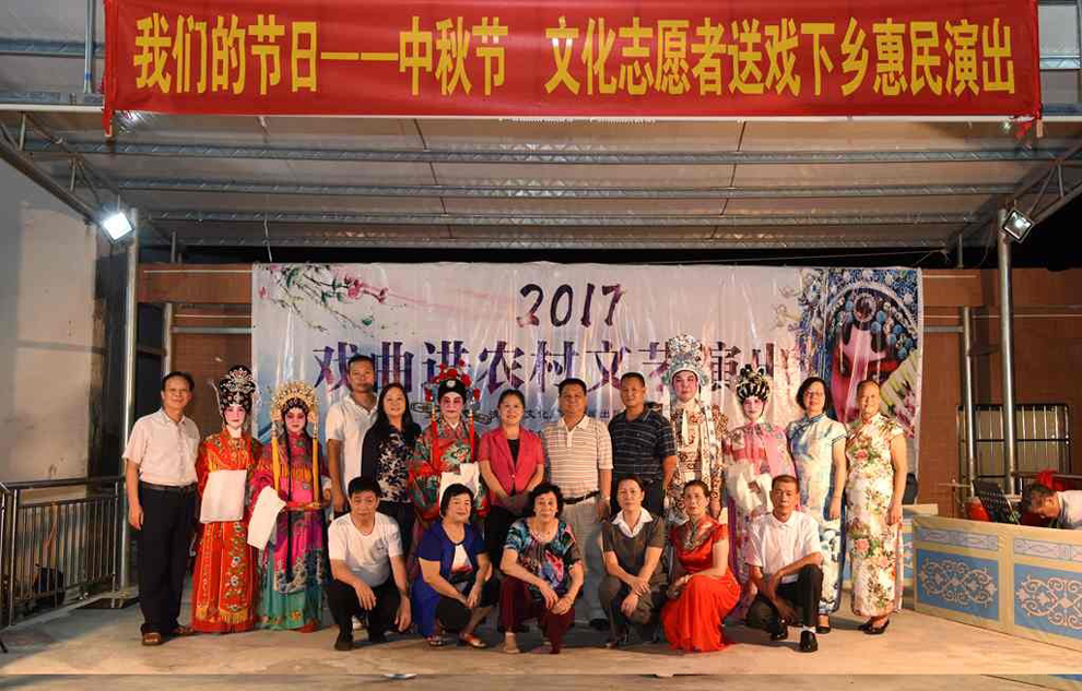 演出结束后县政协、镇政府有关领导与演职员们合影。