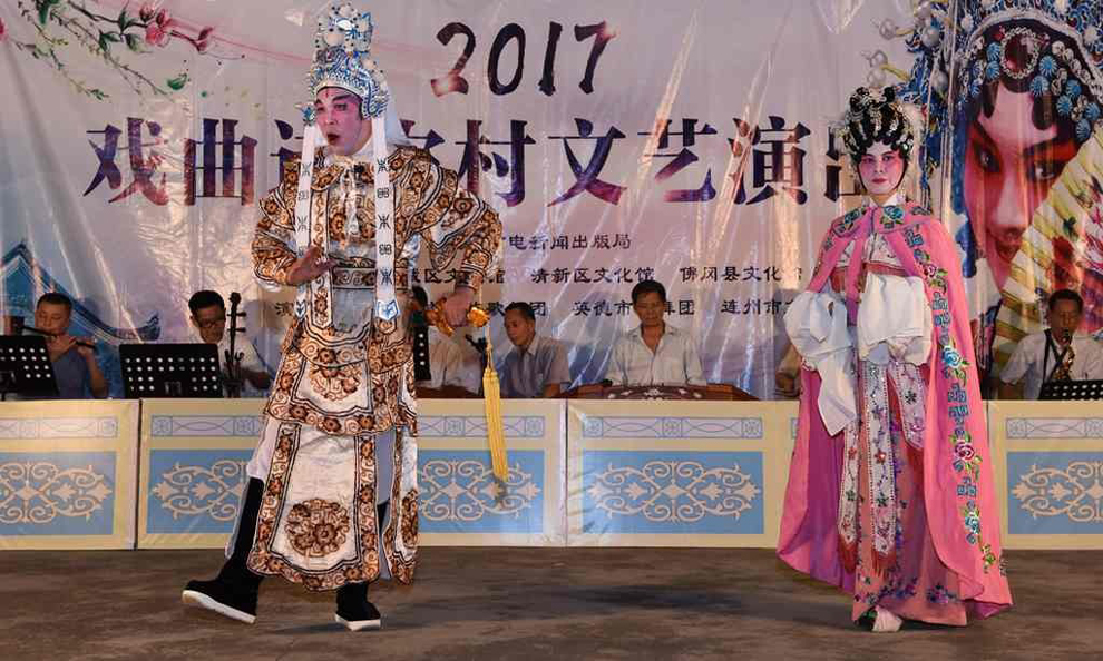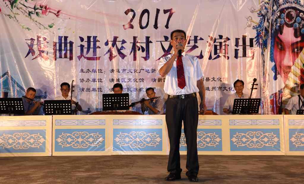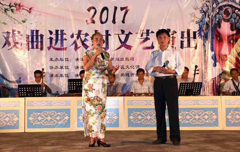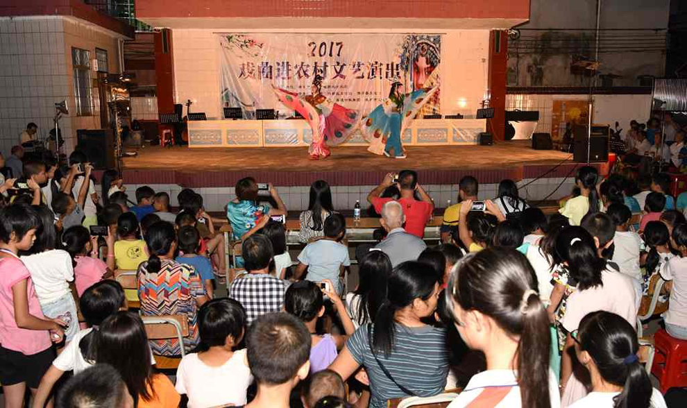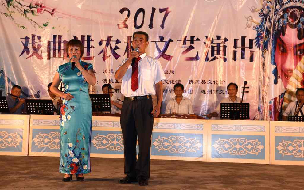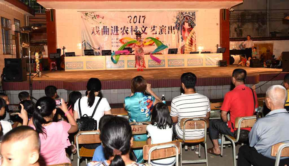为贯彻落实习近平总书记关于文艺工作的重要讲话和市文广新局《关于开展2017年清远市戏曲进农村试点工作的通知》精神,普及和传承中华优秀传统文化,繁荣农村戏曲市场,迎接和庆祝党的十九次全国代表大会的召开,紧紧围绕县委、县政府实施“三个全域,两大攻坚”的战略部署,根据县文广新局的部署安排,县文化馆组织阳禺粤乐社、艺海乐队深入本县农村基层,于2017年9月29日晚上来到阳城镇雷公坑村委会开展“2017戏曲进农村文艺演出”,受到当地群众的热烈欢迎。演出地点阳城镇雷公坑小学舞台。