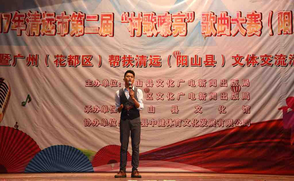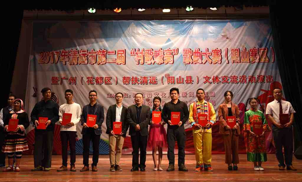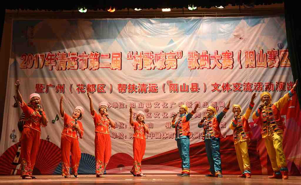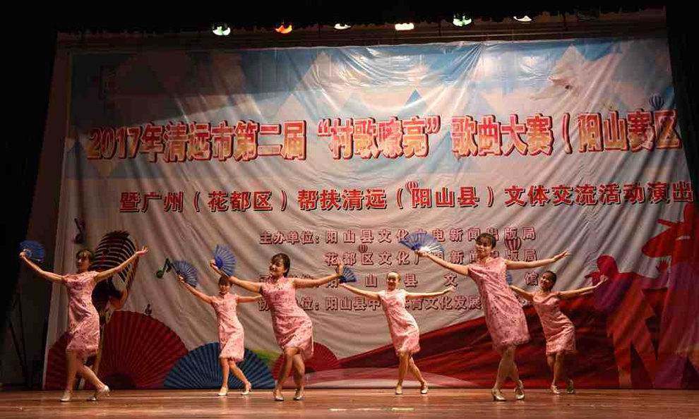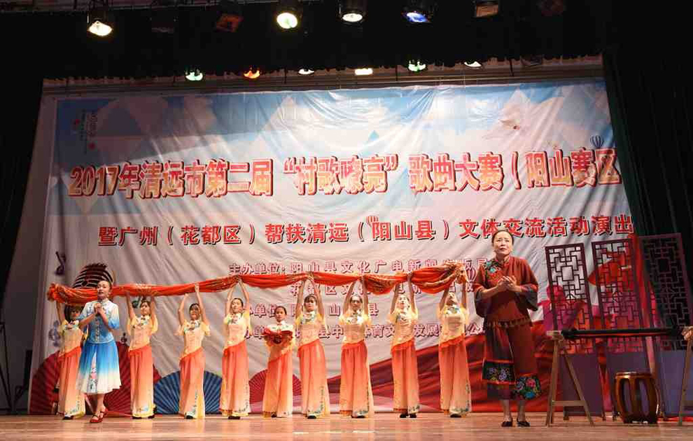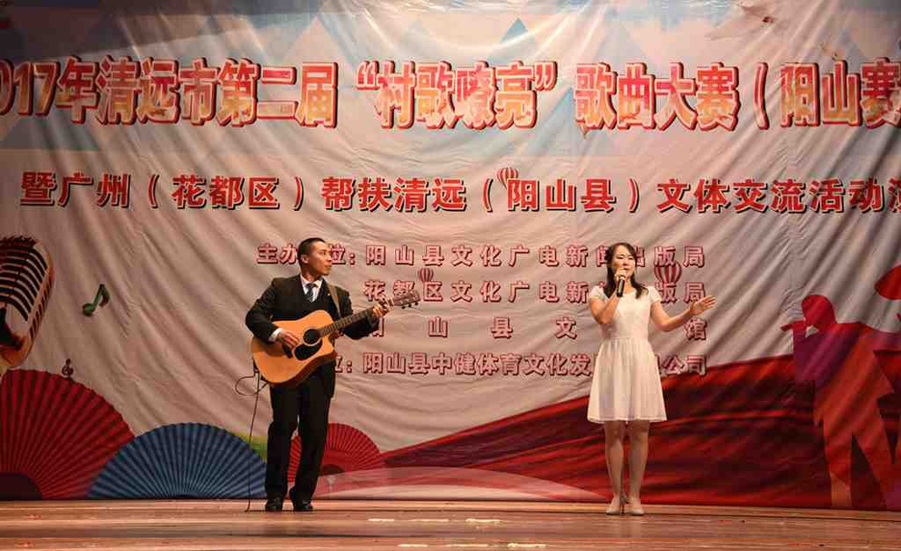 2017年11月7日晚7时30分,清远市第二届“村歌嘹亮”歌曲大赛(阳山赛区)暨广州(花都区)帮扶清远(阳山县)文体交流活动演出在阳山影剧院盛大举行。