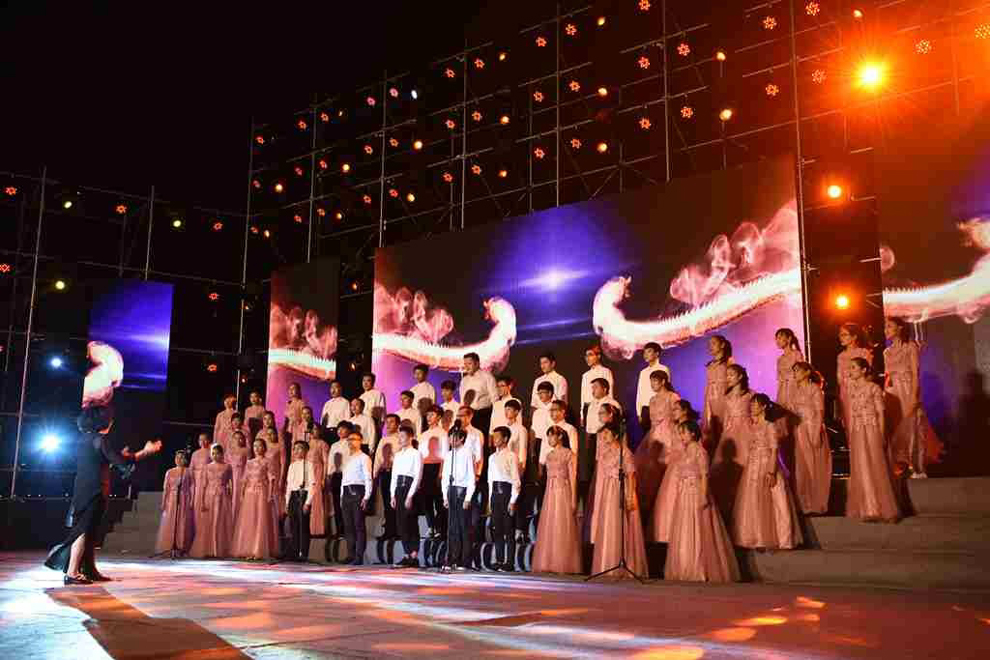 阳山县合唱团表演的大合唱《龙的传人》、《在太行山上》。
