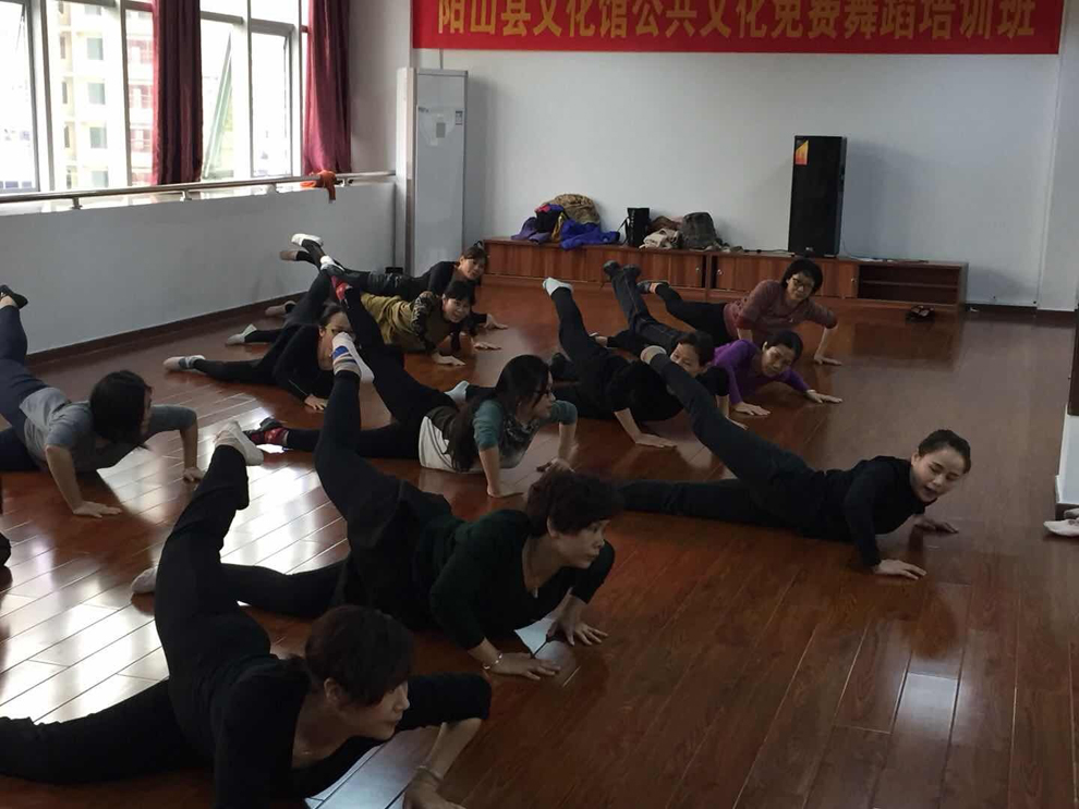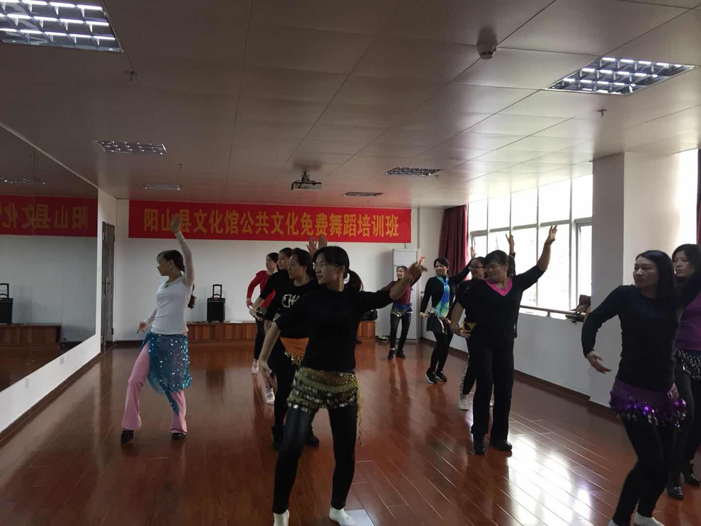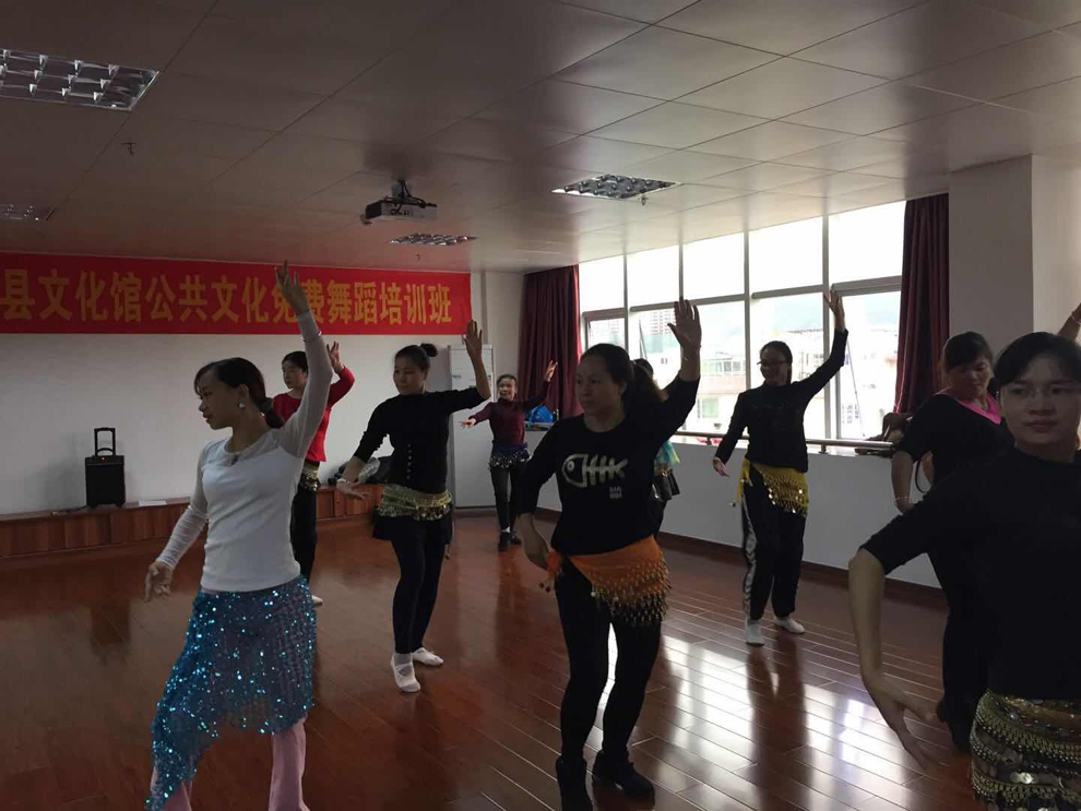 为繁荣和丰富群众的文化生活,提高广大群众的文化幸福感,县文化馆于2017年12月2日至12月16日(逢星期六、日共5天)举办2017年第三期公共文化免费舞蹈培训班,本期开设3个班,有成人当代舞班、成人肚皮舞班和少儿舞蹈班,每班招收学员20人,共培训学员60人。培训地点:阳山县文化馆舞蹈室。