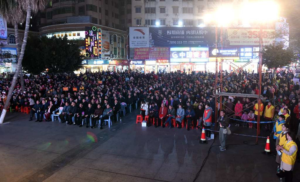 县领导郑怀柱、赖秀华、李神娣、林怡、唐存伟等在一起观看演出。