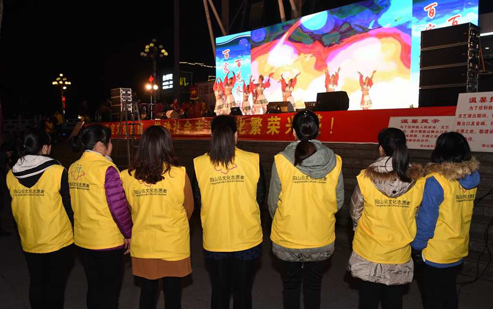 演出结束后,参与当晚演出活动的文化志愿者合影。