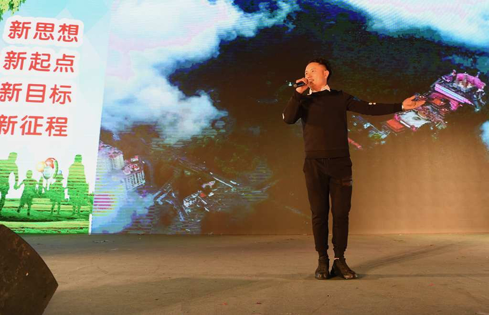 阳山县音乐协会冯伟强表演独唱《阳山欢迎你》。