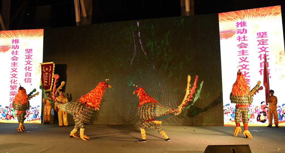 杜步镇旱坑凤舞队表演的民间舞蹈《凤舞》。