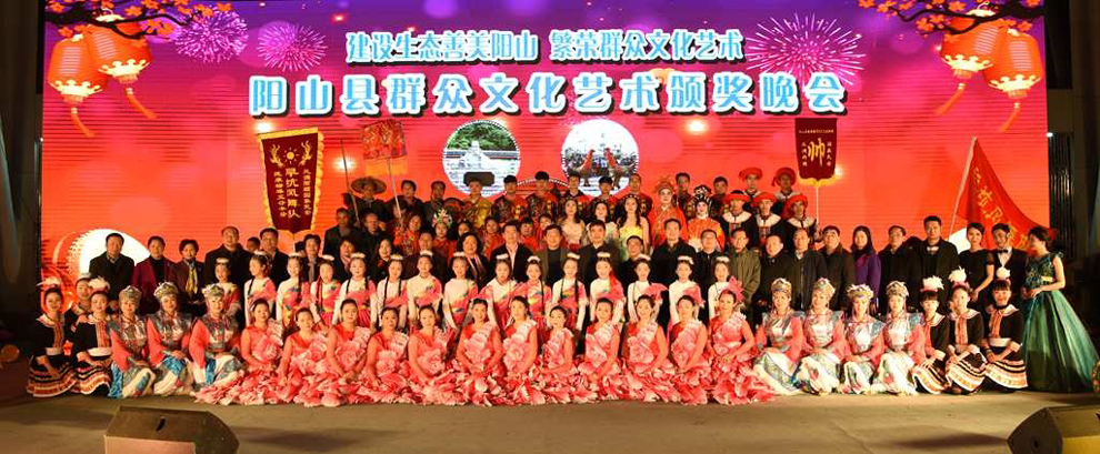 演出结束后,观看演出的县四套领导班子与演员合影。
