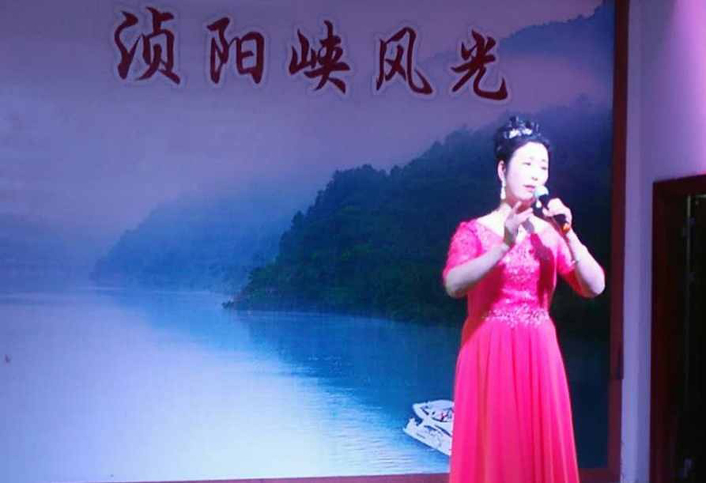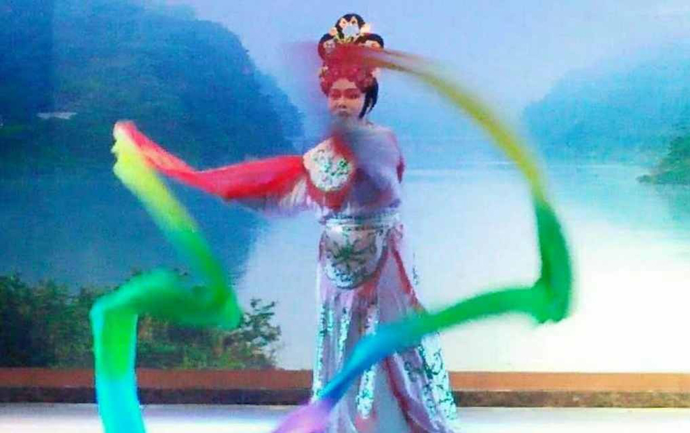 邓惠芳演出舞蹈表演唱《天女散花》。