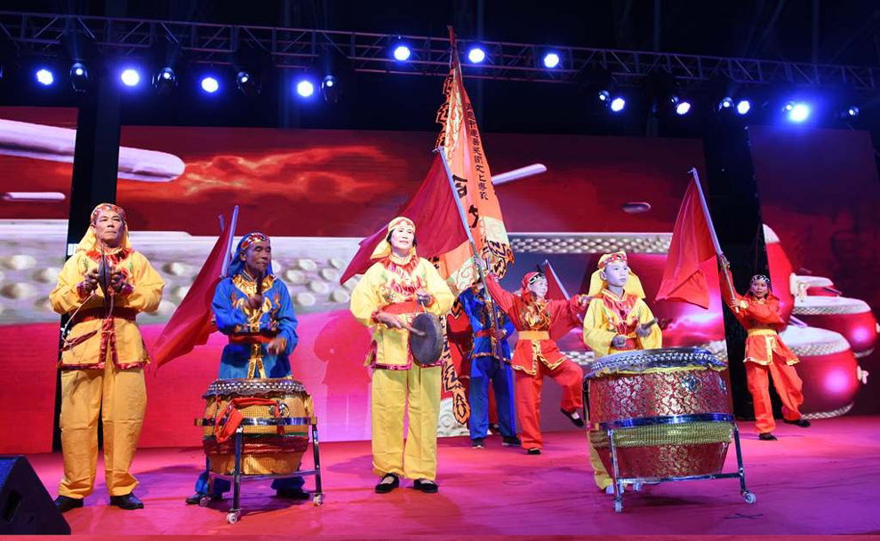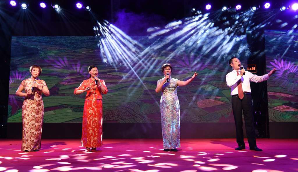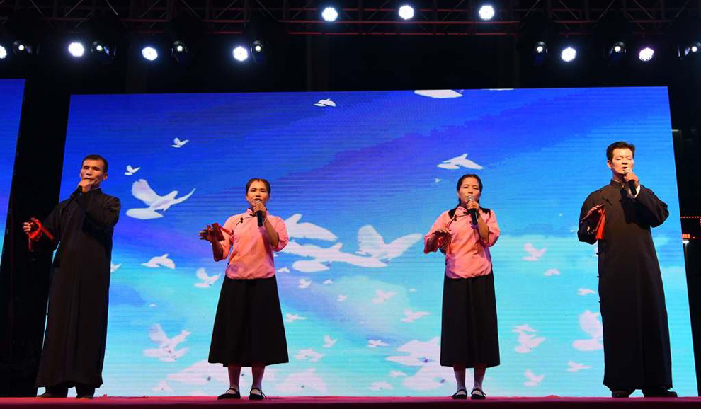 大崀镇综合文化站表演的粤曲合唱《党的功勋卓著光照年年》。