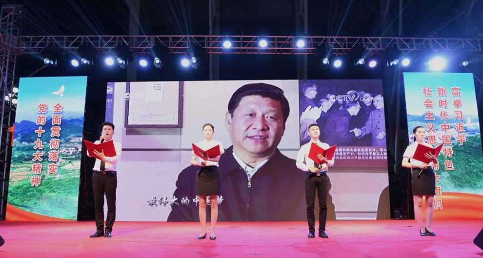 坑塘村委会表演的诗朗诵《不忘初心、永远跟党走》。