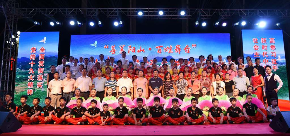 演出结束后,观看演出的县领导、大崀镇领导班子与演员们合影。