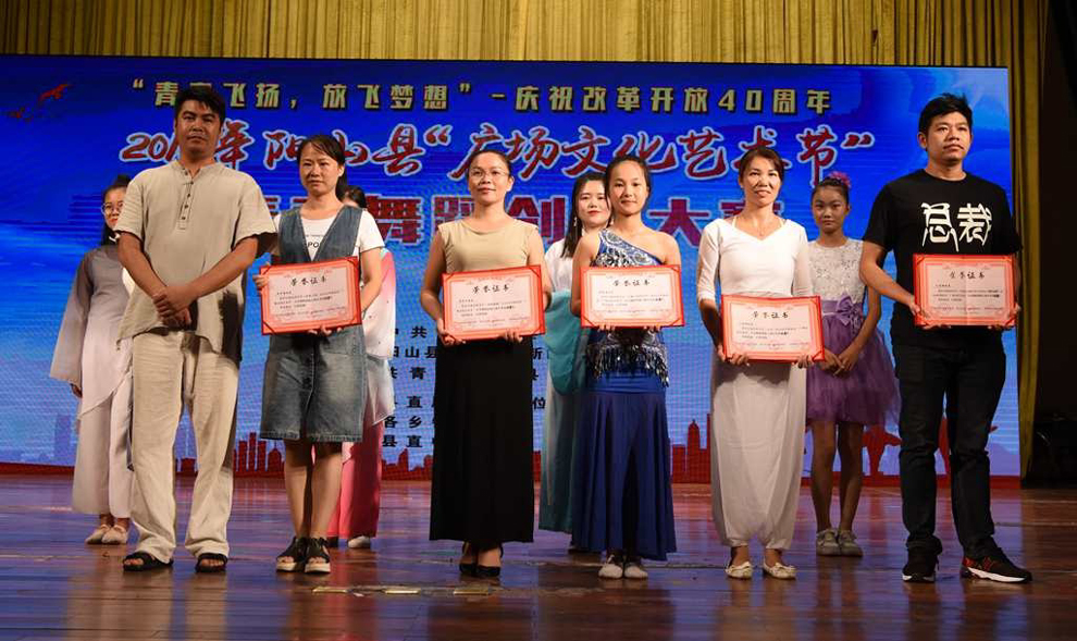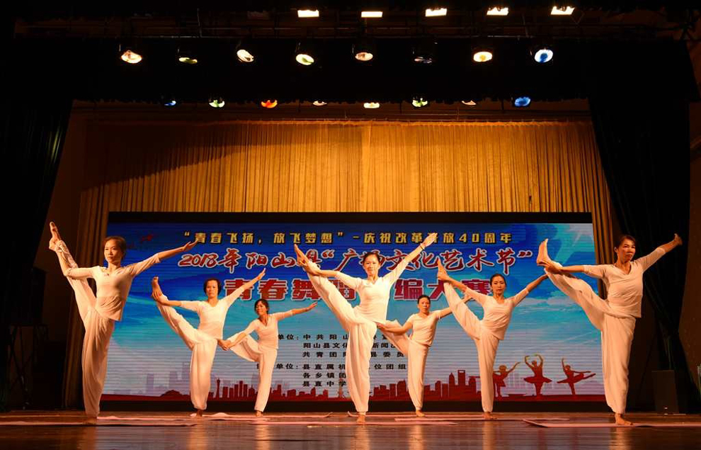 下午2时30分至4时30分,2018年阳山县“广场文化艺术节” ——“青春舞蹈”创编大赛激烈进行。经评委认真公平的评审,最后人民法院的《误》获金奖;职业技术学校的《星空下的遐想》、第二中学的《我的中国梦》获银奖;韩愈中学的《粤北1939》、黎埠镇的《离人愁》和阳山中学的《烟雨江南》获铜奖。其余5个节目获优秀奖。