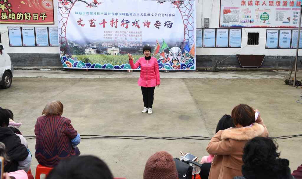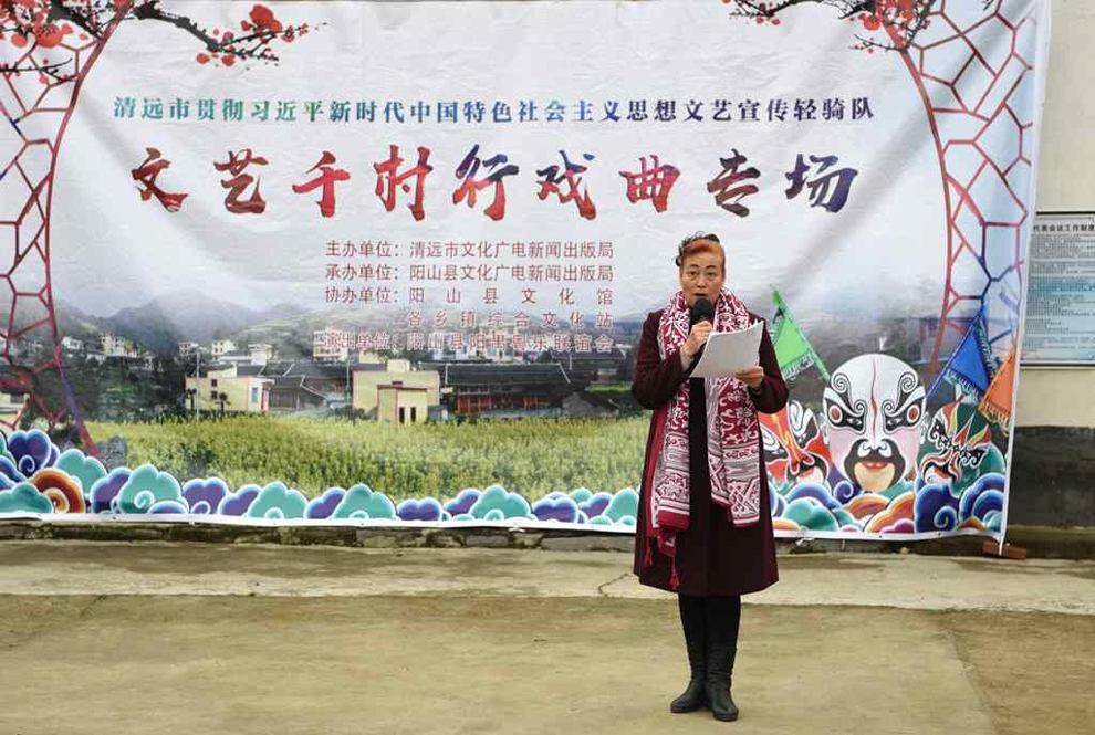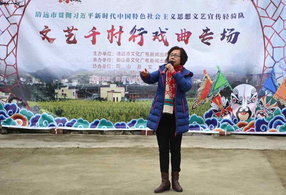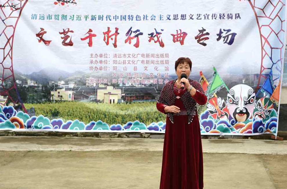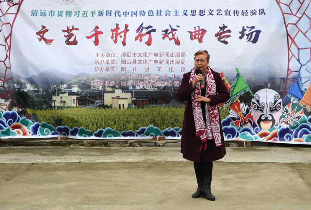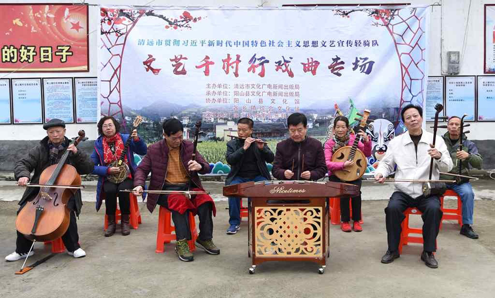 为宣传贯彻党的十九大会议精神,普及和传承中华优秀传统文化,繁荣农村戏曲市场,根据清远市文化广电新闻出版局《关于做好宣传习近平新时代中国特色社会主义思想文艺轻骑队暨清远市民生十件实事—戏曲进农村演出相关工作的通知》(清文通【2018】59号)精神,紧紧围绕县委、县政府实施乡村振兴战略“三个全域两大攻坚”系列行动,阳山县文化馆组织阳山县阳禺粤乐联谊会送戏下乡深入本县农村基层开展“贯彻习近平新时代中国特色社会主义思想文艺轻骑队—文艺千村行戏曲专场”演出活动,用曲艺的清歌雅韵把欢乐带给现场的父老乡亲们,受到当地群众的热烈欢迎。主办单位:清远市文化广电新闻出版局。承办单位:阳山县文化广电新闻出版局,阳山县文化馆,各乡镇综合文化站。演出单位:阳山县阳禺粤乐联谊会。演出时间:2018年12月7日下午,演出地点:阳山县 七拱镇西连村。