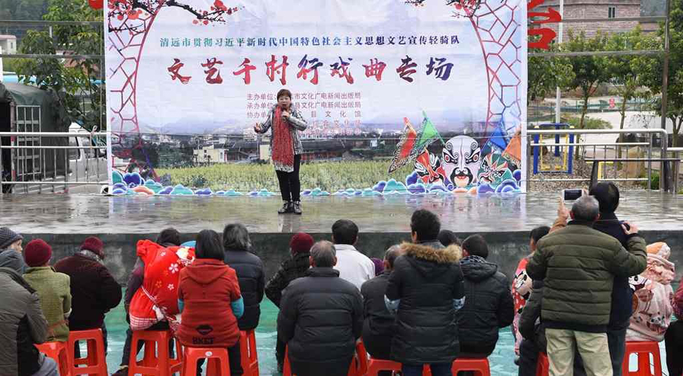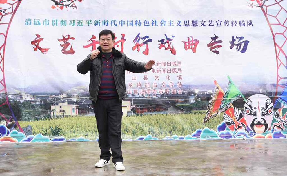 为宣传贯彻党的十九大会议精神,普及和传承中华优秀传统文化,繁荣农村戏曲市场,根据清远市文化广电新闻出版局《关于做好宣传习近平新时代中国特色社会主义思想文艺轻骑队暨清远市民生十件实事—戏曲进农村演出相关工作的通知》(清文通【2018】59号)精神,紧紧围绕县委、县政府实施乡村振兴战略“三个全域两大攻坚”系列行动,阳山县文化馆组织阳山县阳禺粤乐联谊会送戏下乡深入本县农村基层开展“贯彻习近平新时代中国特色社会主义思想文艺轻骑队—文艺千村行戏曲专场”演出活动,用曲艺的清歌雅韵把欢乐带给现场的父老乡亲们,受到当地群众的热烈欢迎。主办单位:清远市文化广电新闻出版局。承办单位:阳山县文化广电新闻出版局,阳山县文化馆,各乡镇综合文化站。演出单位:阳山县阳禺粤乐联谊会。演出时间:2018年12月14日上午,演出地点:阳山县大崀镇松林村 。