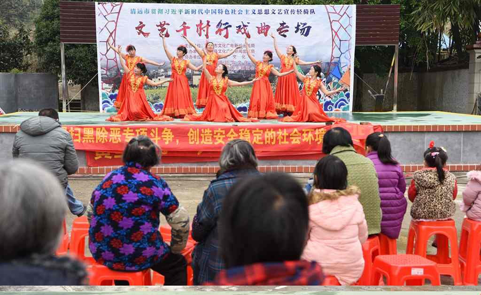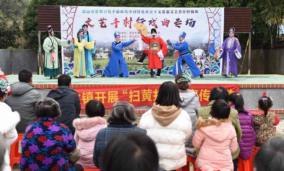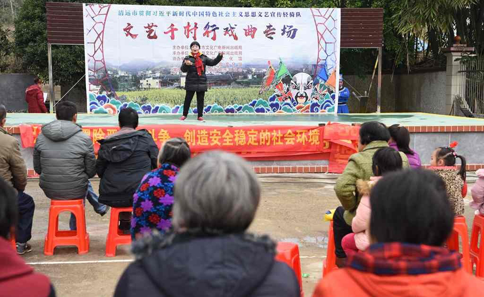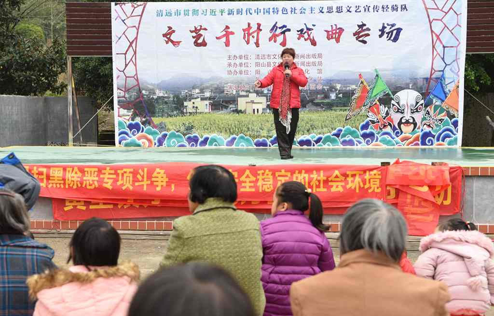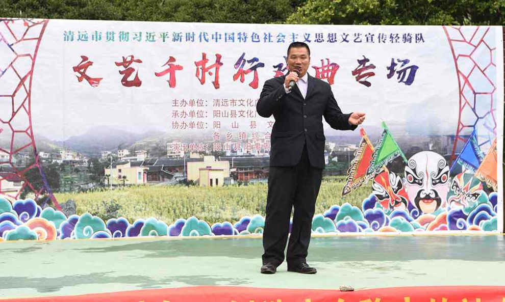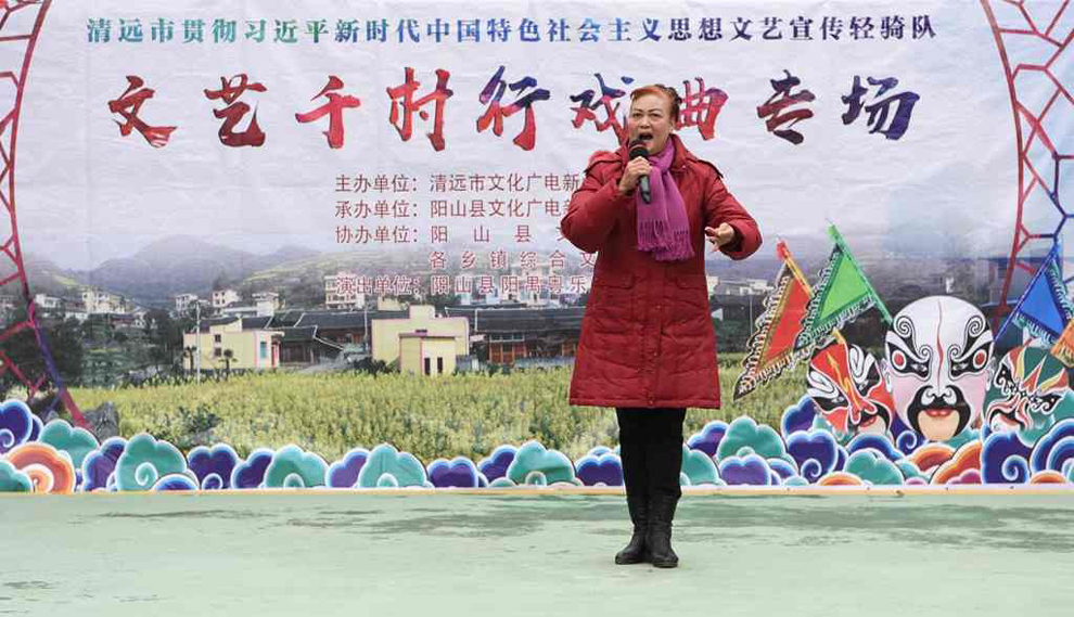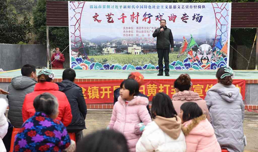 为宣传贯彻党的十九大会议精神,普及和传承中华优秀传统文化,繁荣农村戏曲市场,根据清远市文化广电新闻出版局《关于做好宣传习近平新时代中国特色社会主义思想文艺轻骑队暨清远市民生十件实事—戏曲进农村演出相关工作的通知》(清文通【2018】59号)精神,紧紧围绕县委、县政府实施乡村振兴战略“三个全域两大攻坚”系列行动,阳山县文化馆组织阳山县阳禺粤乐联谊会送戏下乡深入本县农村基层开展“贯彻习近平新时代中国特色社会主义思想文艺轻骑队—文艺千村行戏曲专场”演出活动,用曲艺的清歌雅韵把欢乐带给现场的父老乡亲们,受到当地群众的热烈欢迎。主办单位:清远市文化广电新闻出版局。承办单位:阳山县文化广电新闻出版局,阳山县文化馆,各乡镇综合文化站。演出单位:阳山县阳禺粤乐联谊会。演出时间:2018年12月15日上午,演出地点:阳山县黄坌镇高陂村 。