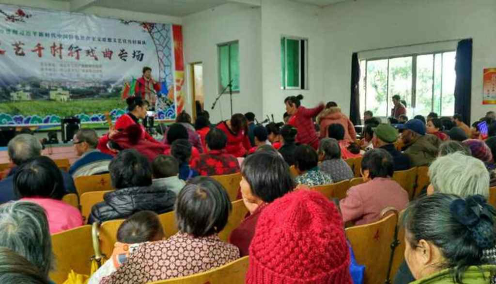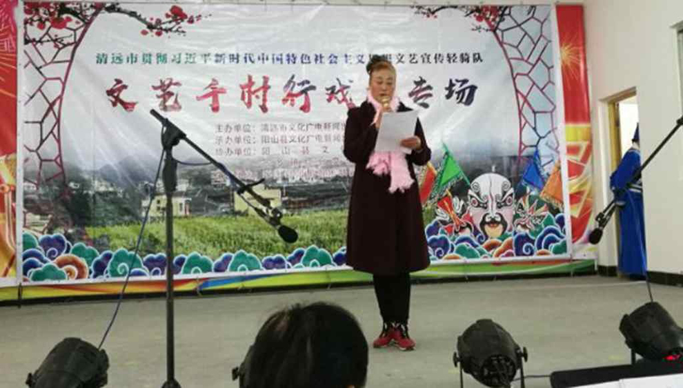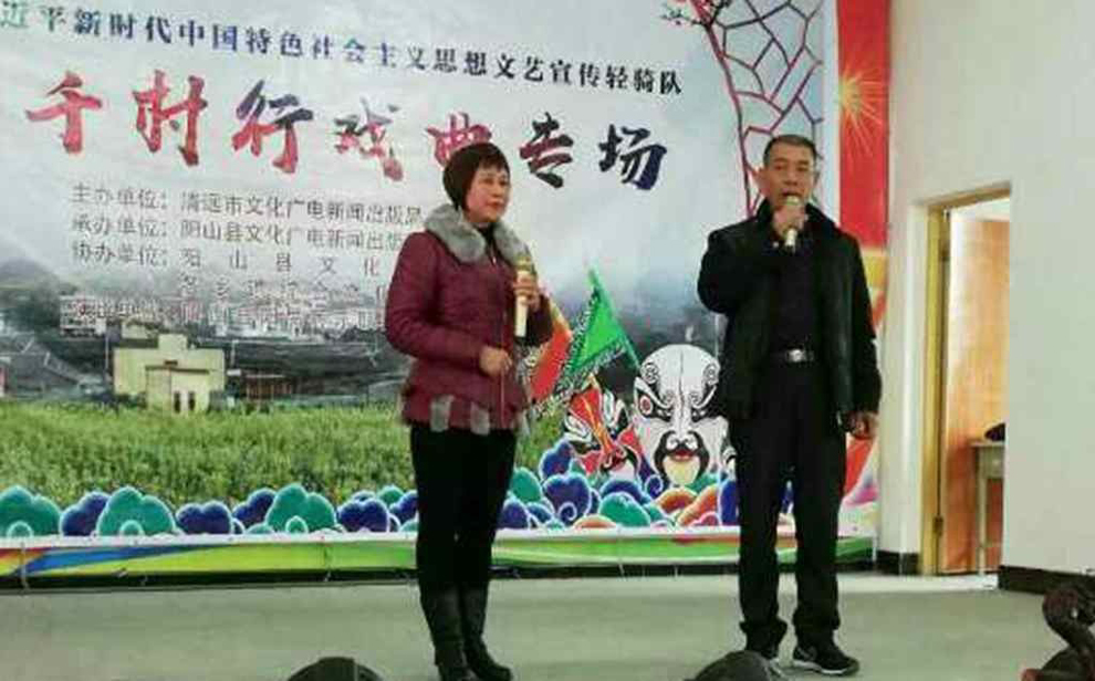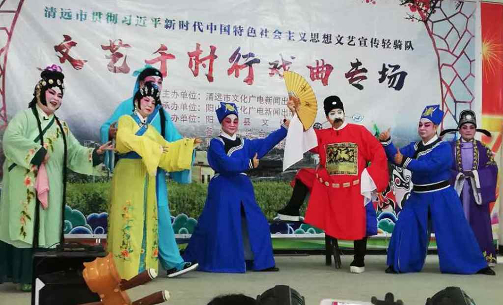 为宣传贯彻党的十九大会议精神,普及和传承中华优秀传统文化,繁荣农村戏曲市场,根据清远市文化广电新闻出版局《关于做好宣传习近平新时代中国特色社会主义思想文艺轻骑队暨清远市民生十件实事—戏曲进农村演出相关工作的通知》(清文通【2018】59号)精神,紧紧围绕县委、县政府实施乡村振兴战略“三个全域两大攻坚”系列行动,阳山县文化馆组织阳山县阳禺粤乐联谊会送戏下乡深入本县农村基层开展“贯彻习近平新时代中国特色社会主义思想文艺轻骑队—文艺千村行戏曲专场”演出活动,用曲艺的清歌雅韵把欢乐带给现场的父老乡亲们,受到当地群众的热烈欢迎。主办单位:清远市文化广电新闻出版局。承办单位:阳山县文化广电新闻出版局,阳山县文化馆,各乡镇综合文化站。演出单位:阳山县阳禺粤乐联谊会。演出时间:2018年12月25日上午 ,演出地点:阳山县太平镇太平村 。