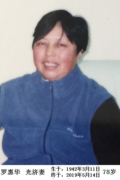 罗惠华 妻子 生于:1942年3月11日,终于:2019年5月14日。享寿:78岁。葬于:罗磅山。生女四:长 绍琼、绍红、绍彦、绍媚。
