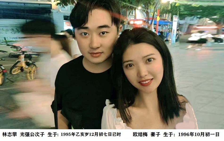 林志攀 光强次男 生于:1995年乙亥岁12月初七日已时。