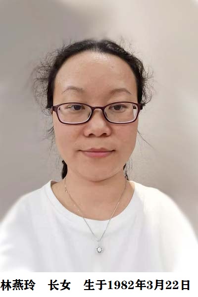 长女 生于1982年3月22日早上10点30分;嫁广西壮族自治区梧州市蒙山县湄江街东巷6号黄氏黄位有长子黄自军为妻。