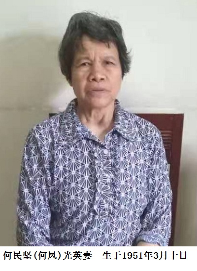 何民坚 妻子,围龙何屋何家女。从教,生于1951年辛卯岁三月初十日。