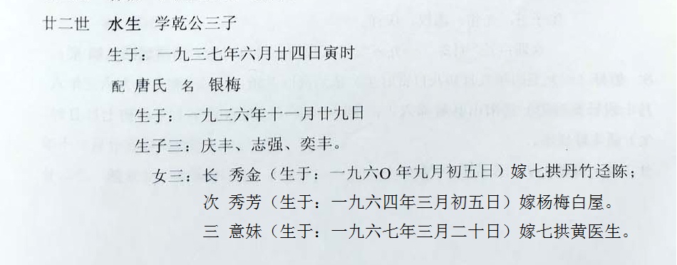 林水生 学乾公三子,于1937年6月二十四日寅时出生。
