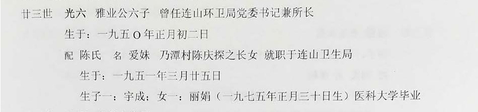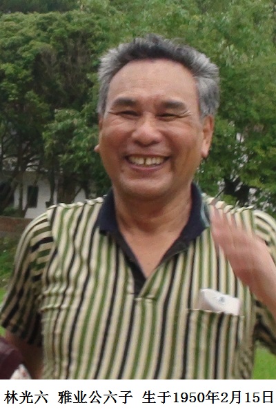 林光六 雅业公六子 曾经任连山环卫党委书记兼所长;生于:1950年2月15日出生(农历1950年正月初二日)