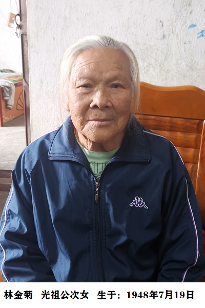 四女儿 生于:1951年11月21日. 嫁广宁北市江先珍为妻二子四女