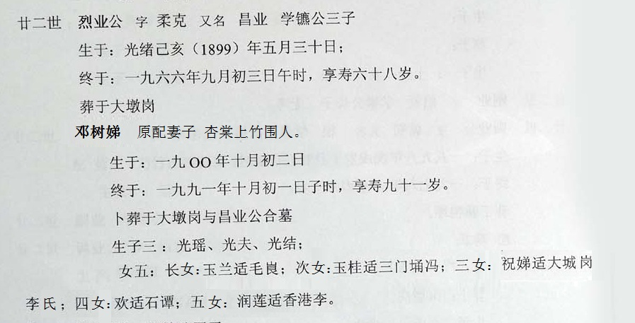 林 祝 三女 出生于 年 月 日,嫁太平镇大城岗李先生为妻。生育一子一女。