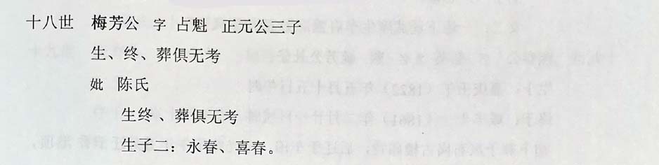 林梅芳,字 占魁 正元公三子。生终葬无考。